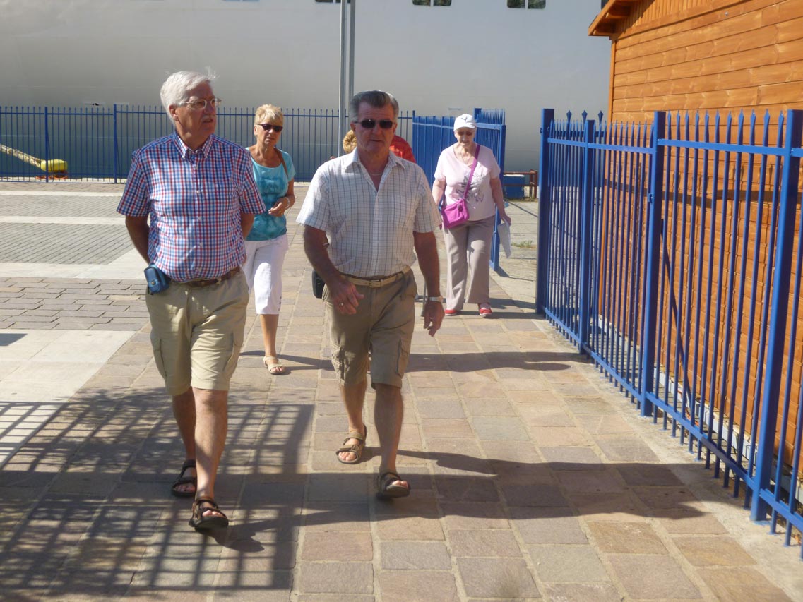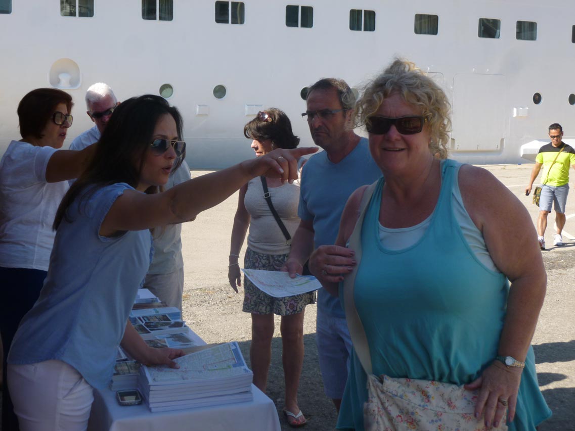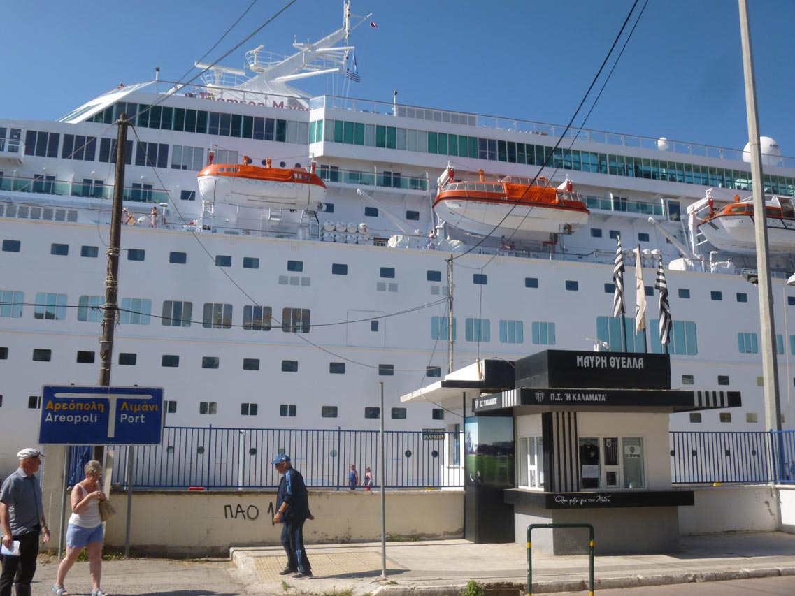 Τους επισκέπτες υποδέχθηκε αντιπροσωπεία του Δήμου Καλαμάτας που μοίραζε χάρτες και κάρτες, ενώ ενημέρωνε για τα αξιοθέατα της περιοχής. Οι πιο πολλοί τουρίστες επισκέπτονται το εμπορικό και ιστορικό κέντρο της πόλης, καθώς και την παραλία. Ενα πούλμαν με τουρίστες επισκέπτεται την Αρχαία Μεσσήνη και ένα άλλο τα κάστρα της Πύλου και της Μεθώνης. Το κρουαζιερόπλοιο προέρχεται από τα Χανιά και θα αναχωρήσει το μεσημέρι με προορισμό την Κέρκυρα.