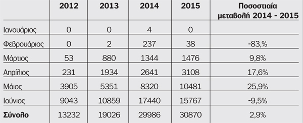 Αναλυτικά οι αφίξεις της τελευταίας 4ετίας ανά μήνα παρουσιάζονται στον πίνακα.