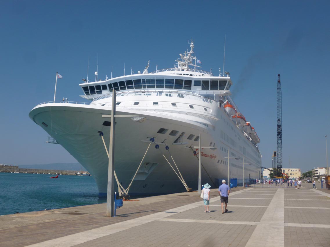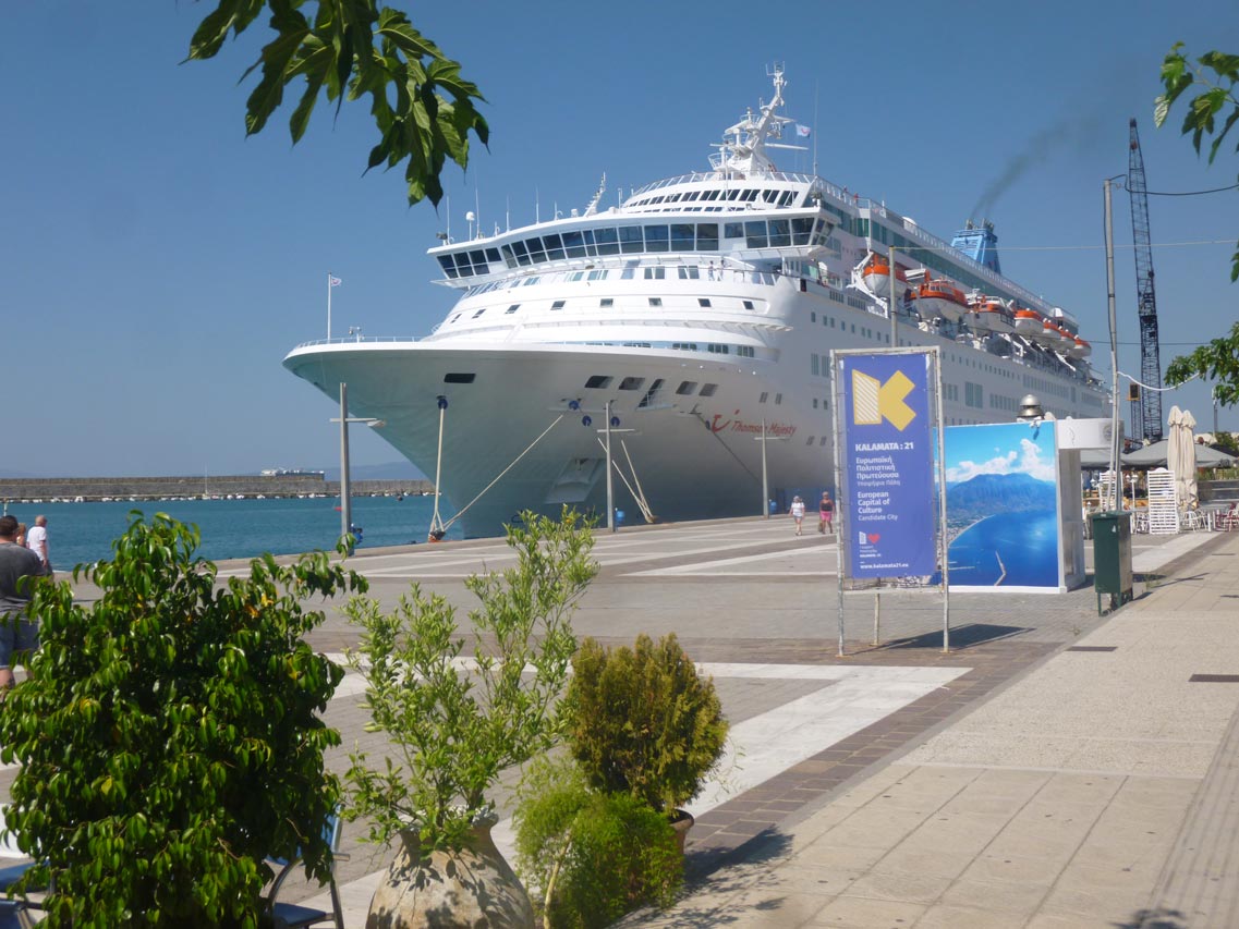 Δύο πούλμαν με τουρίστες επισκέπτονται την Αρχαία Μεσσήνη και άλλα δύο τα κάστρα της Πύλου και της Μεθώνης. Το κρουαζιερόπλοιο προέρχεται από τα Χανιά και θα αναχωρήσει το μεσημέρι με προορισμό την Κέρκυρα.