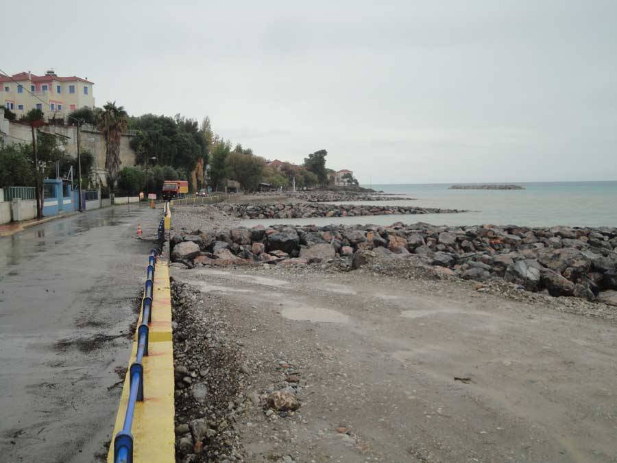 Συγκεκριμένα, όσον αφορά την αλλαγή της εικόνας στο σημείο της παρέμβασης που βρισκόταν ο τοίχος προστασίας με τα κάγκελα, όπου η θάλασσα χτυπούσε με μανία κι έφτανε στο δρόμο, ανάμεσα στους προβόλους έχουν πέσει χιλιάδες κυβικά αμμοχάλικο κι έχει δημιουργηθεί παραλία, ακτή για κολύμβηση. Και χθες, παρά τη βροχή και τον κακό καιρό, φορτηγά μετέφεραν συνεχώς και άδειαζαν αμμοχάλικο από το ρέμα της Σάνταβας. Η εικόνα δείχνει ότι το έργο πλησιάζει στο τέλος του κι εκφράζεται η ελπίδα πως σ’ αυτό το σημείο η θάλασσα δεν θα απειλεί το δρόμο.