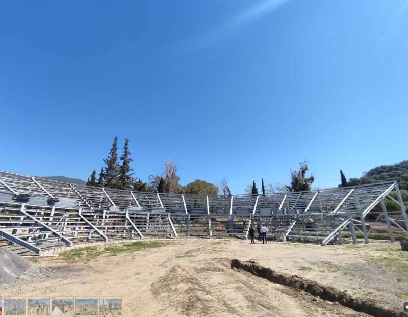 Με βάση την ίδια ενημέρωση, παράλληλα με τις εργασίες που αφορούν την ολοκλήρωση της μεταλλικής κερκίδας, παρεμβάσεις εκτελούνται και στα δίκτυα ηλεκτρομηχανολογικά περιμετρικά της κερκίδας, ενώ θα ακολουθήσει η διαμόρφωση και του περιβάλλοντος χώρου.