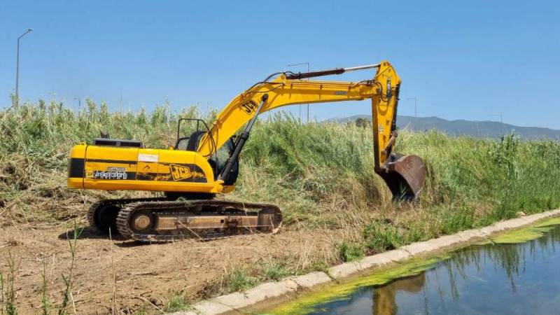 Μηχάνημα καθαρίζει τον χώρο κάτω από τη γραμμή και πάνω από το αρδευτικό κανάλι του ΓΟΕΒ και τον δρόμο της περιοχής (μπροστά από μεταποιητικές μονάδες). Και αυτό γιατί το κανάλι πρέπει να μεταφερθεί λίγα μέτρα πιο βόρεια, πιο κοντά στη γραμμή, ώστε σε όλο τον υπόλοιπο χώρο, σε αυτόν που καθαρίζεται, στο κανάλι και στον δρόμο, να δημιουργηθεί ένας σύγχρονος δίιχνος δρόμος (με δύο λωρίδες), που θα αποτελεί το ρεύμα κυκλοφορίας του νέου οδικού άξονα προς το Ασπρόχωμα και την Καλαμάτα.