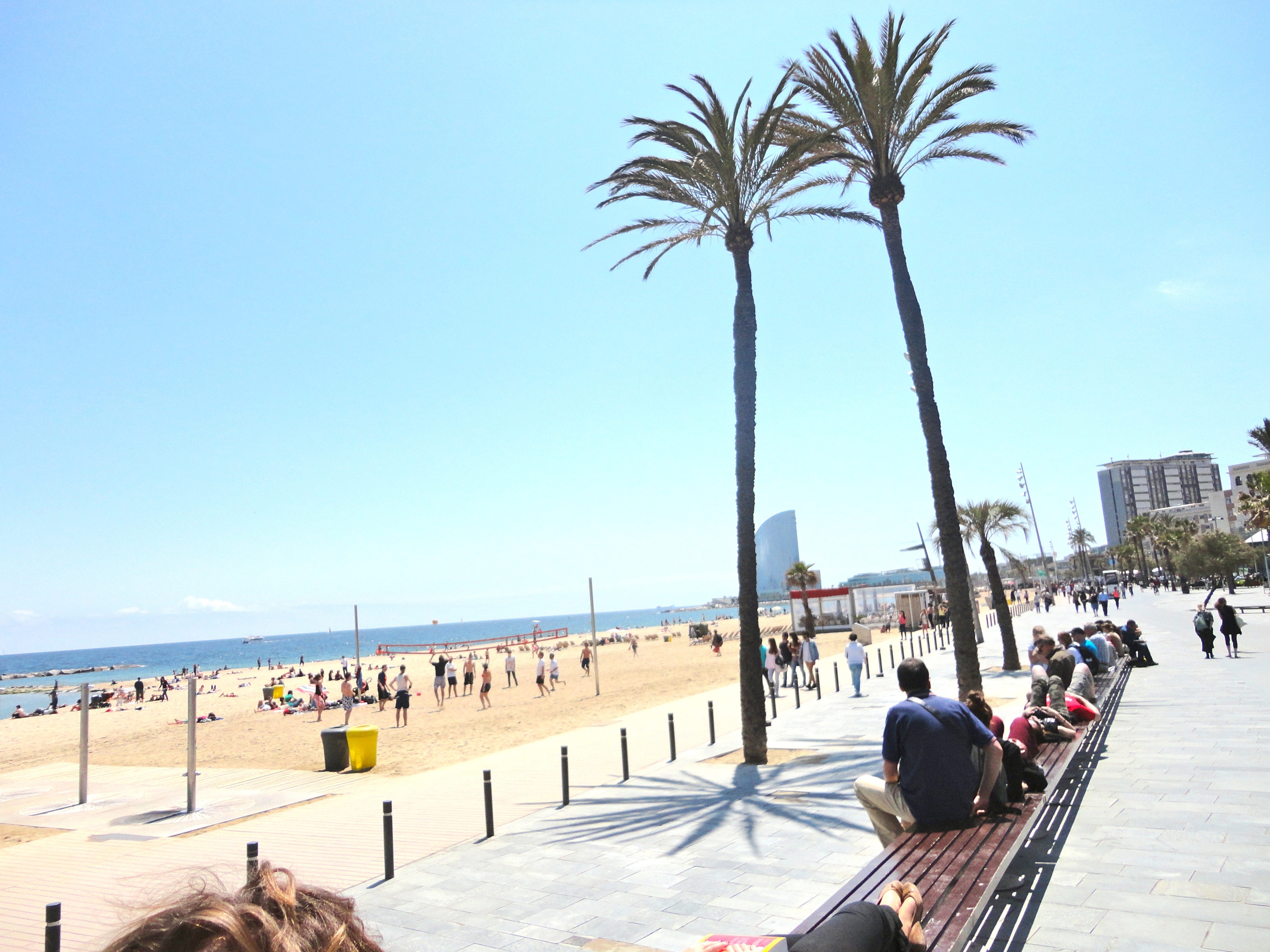 Πάνω/ Βarceloneta, η βασική παραλία της Βαρκελώνης μετά τη ανάπλασή της και αξιοποίησή της αποτελεί πόλο έλξης αναρίθμητων επισκεπτών ετησίως, κάτω/ η Βarceloneta το 1987, 5 έτη πριν την ανάπλαση κανείς δε φανταζόταν τη σημερινή κατάσταση