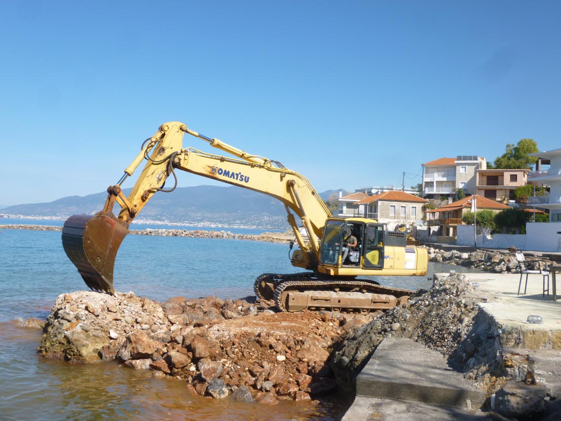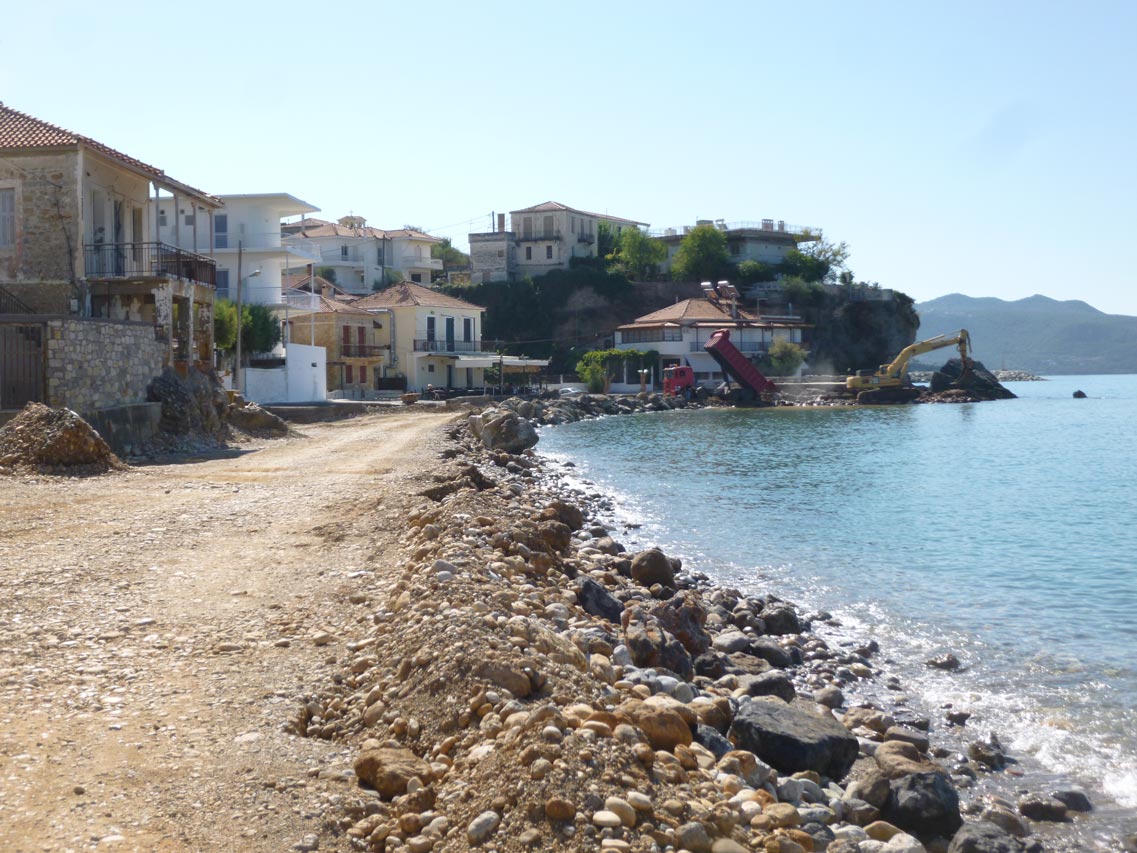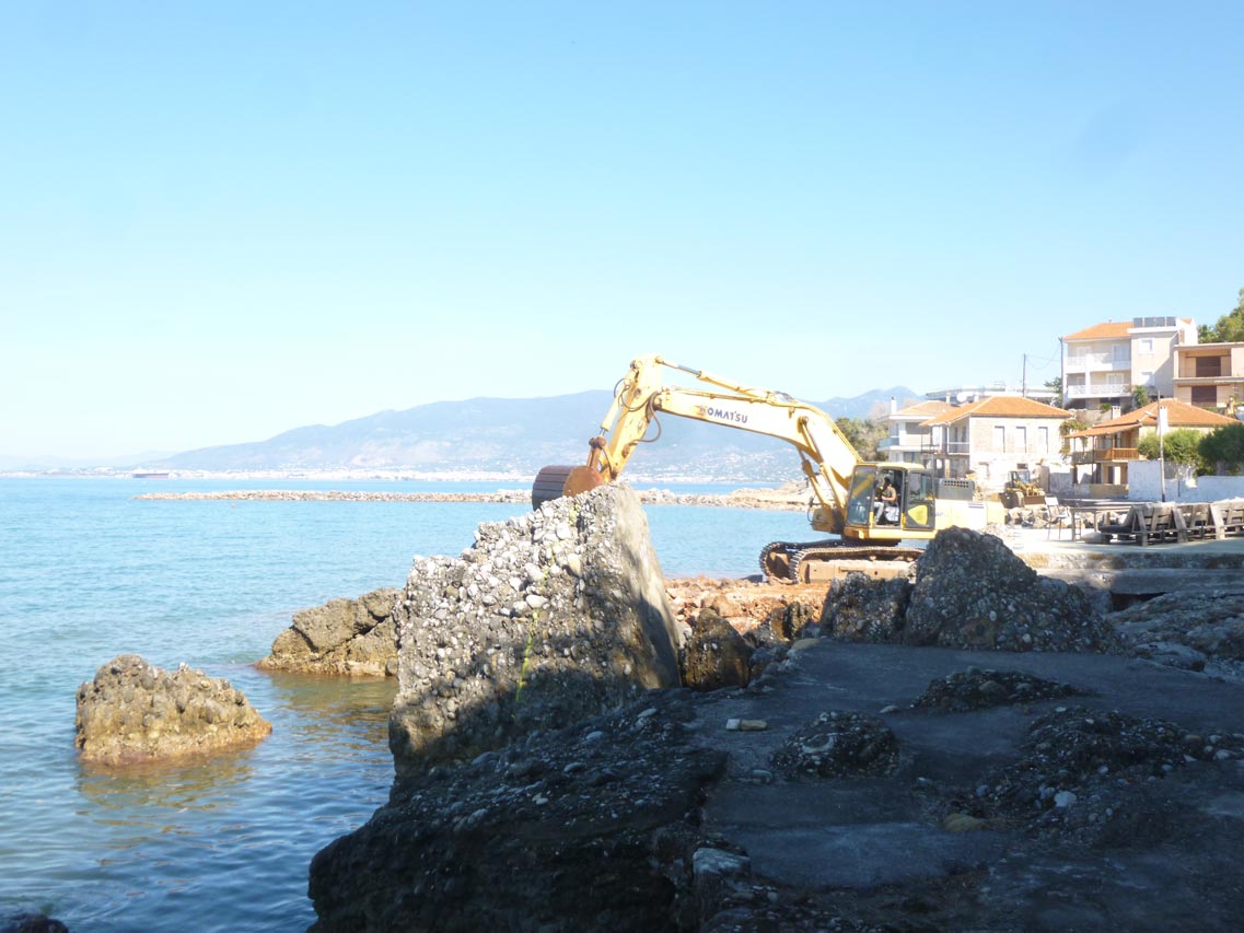 Στην περιοχή έχει φτιαχτεί ένας πρόβολος, ο οποίος θα μεγαλώσει και θα ενισχυθεί, αλλά και θα διαμορφωθεί σε σχήμα Γ, δημιουργώντας ένα μικρό μόλο, με τη βοήθεια πλωτού γερανού που αναμενόταν χθες το βράδυ. Μηχάνημα από τη στεριά ξεκίνησε την κατασκευή ενός δεύτερου μικρότερου πρόβολου, ενώ στην περιοχή θα δημιουργηθεί και ένα "νησί", όπως έχει γίνει στο τέλος του έργου της Μικρής Μαντίνειας, στη νότια πλευρά προς το Αρχοντικό.