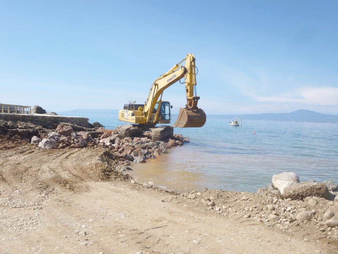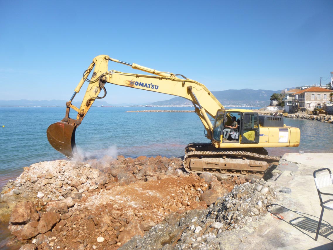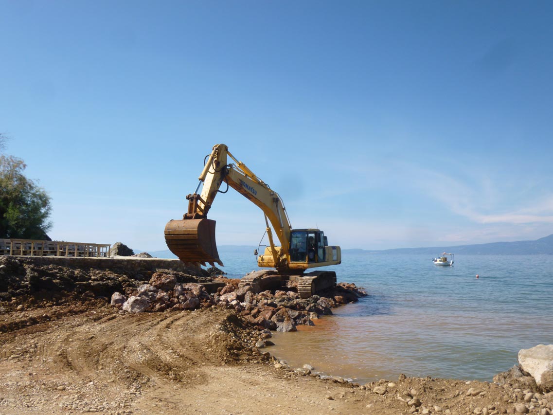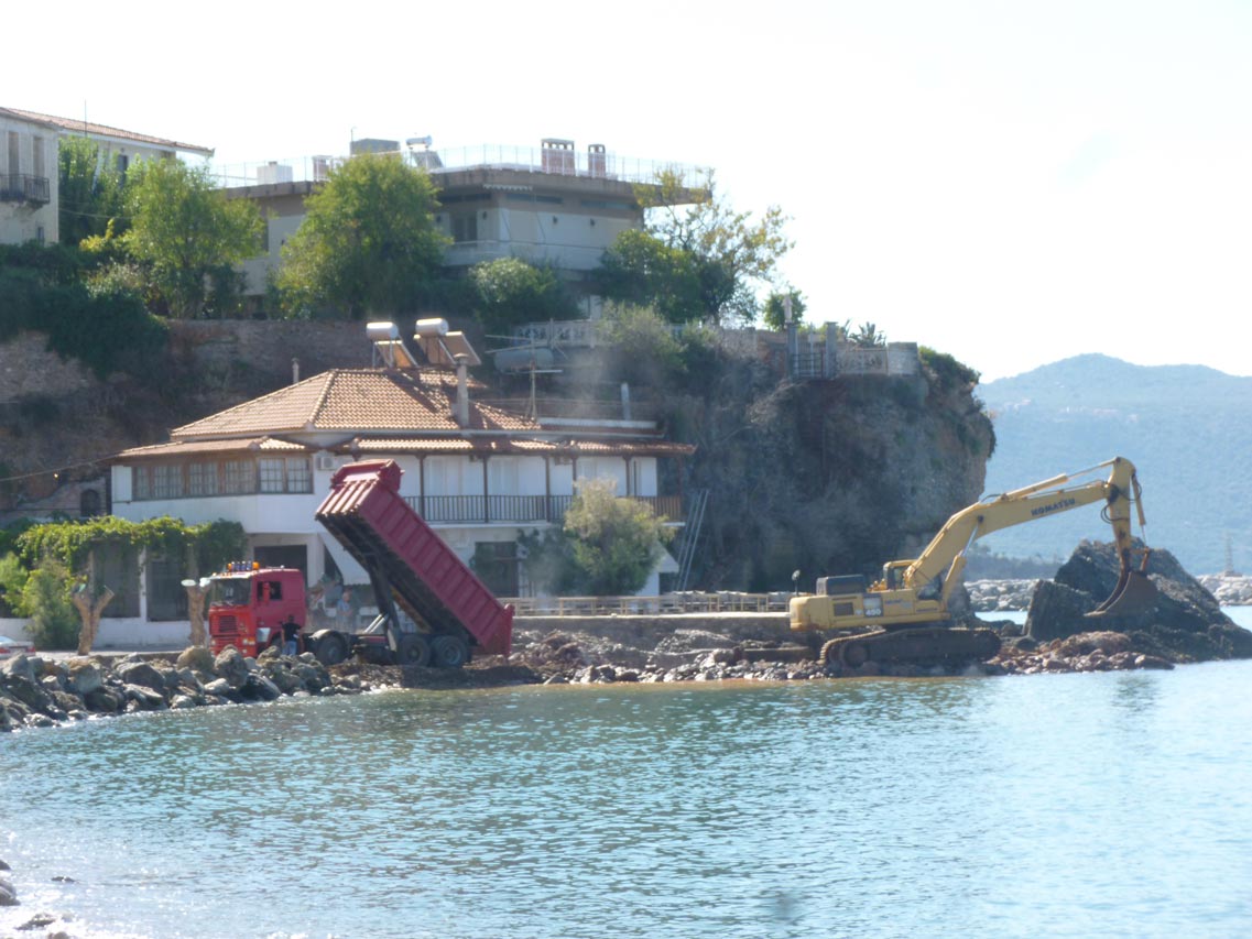 Στην περιοχή έχει φτιαχτεί ένας πρόβολος, ο οποίος θα μεγαλώσει και θα ενισχυθεί, αλλά και θα διαμορφωθεί σε σχήμα Γ, δημιουργώντας ένα μικρό μόλο, με τη βοήθεια πλωτού γερανού που αναμενόταν χθες το βράδυ. Μηχάνημα από τη στεριά ξεκίνησε την κατασκευή ενός δεύτερου μικρότερου πρόβολου, ενώ στην περιοχή θα δημιουργηθεί και ένα "νησί", όπως έχει γίνει στο τέλος του έργου της Μικρής Μαντίνειας, στη νότια πλευρά προς το Αρχοντικό.