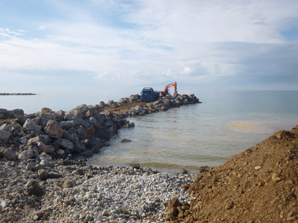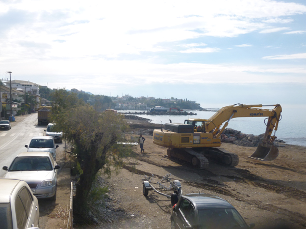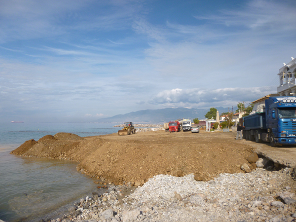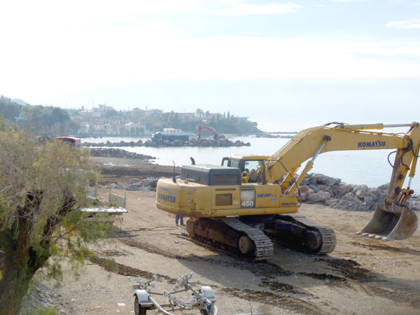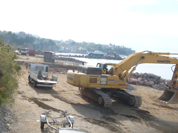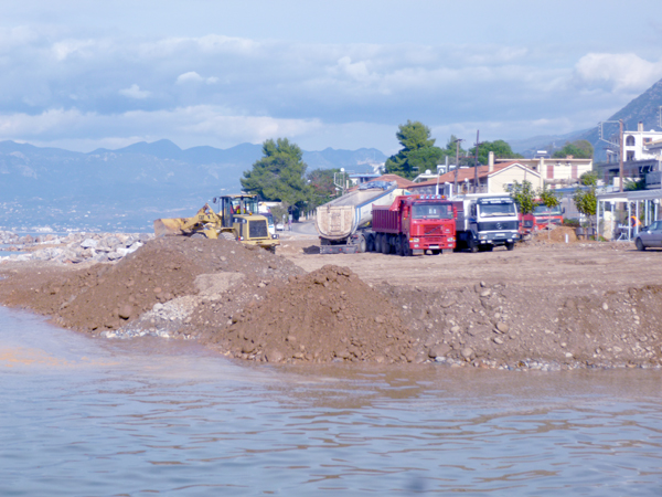 Αυτές τις μέρες στο Αρχοντικό, όπου η περιοχή έχει αλλάξει όψη, επικρατεί πραγματικός οργασμός, με δεκάδες φορτηγά που κουβαλούν συνεχώς πέτρες, βράχια και αμμοχάλικο, για να ολοκληρωθούν πρόβολοι και η διαμόρφωση παραλίας, όπως έχει γίνει στο Ακρογιάλι και στη Μικρή Μαντίνεια.