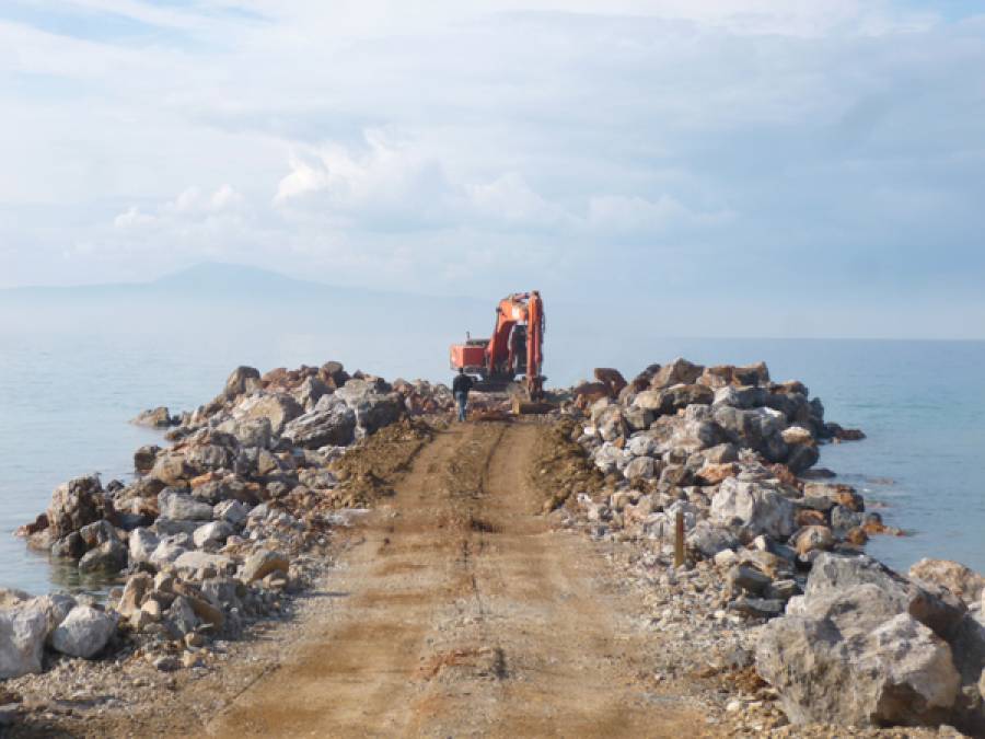 Στην Παλιόχωρα ολοκληρώθηκε η δημιουργία παραλίας, ενώ τελείωσε και ένα "νησάκι" με βράχια πιο βόρεια.
