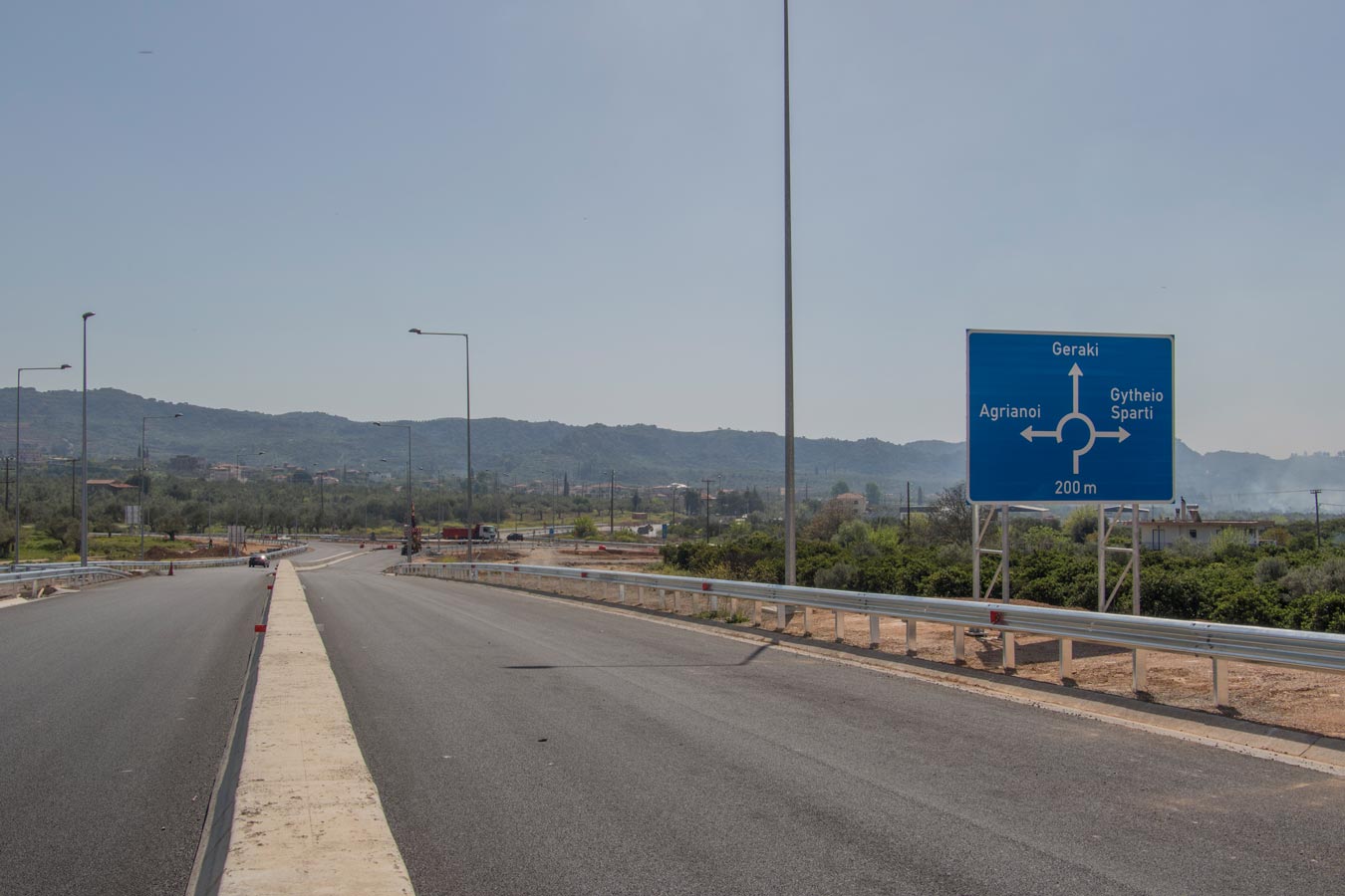 Τα 46 χλμ. του νέου δρόμου θα απαιτούν περίπου 20 λεπτά. Η διαδρομή Σπάρτη - Μεγαλόπολη θα γίνεται σε 25 λεπτά, το Σπάρτη - Τρίπολη σε 30 και το Σπάρτη - Καλαμάτα σε περίπου 45 λεπτά.