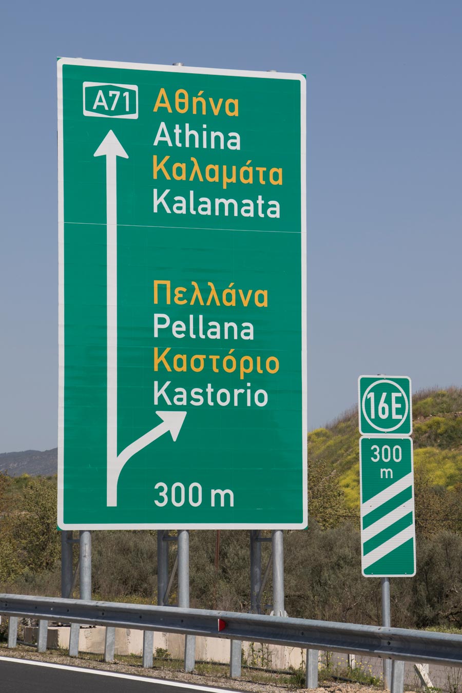 Στην κατεύθυνση προς Σπάρτη συναντά κανείς πρώτα τα διόδια της Πετρίνας και στη συνέχεια τους ανισόπεδους κόμβους Λογκανίκου και Πελλάνας, το Σταθμό Εξυπηρέτησης Αυτοκινητιστών (ΣΕΑ) Πελλάνας, και έπειτα βγαίνει στον κόμβο της Σπάρτης, 2 χιλιόμετρα από την πόλη, στην παλιά εθνική από την Τρίπολη.