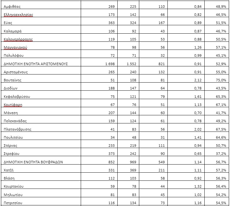 Αναλυτικά στοιχεία ανά παρουσιάζονται στον πίνακα: