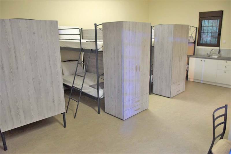 ο ένας δίπλα στον άλλον, με 16 κρεβάτια, ψυγείο, τουαλέτες, νιπτήρα, πλυντήριο, ντους και τηλεόραση.