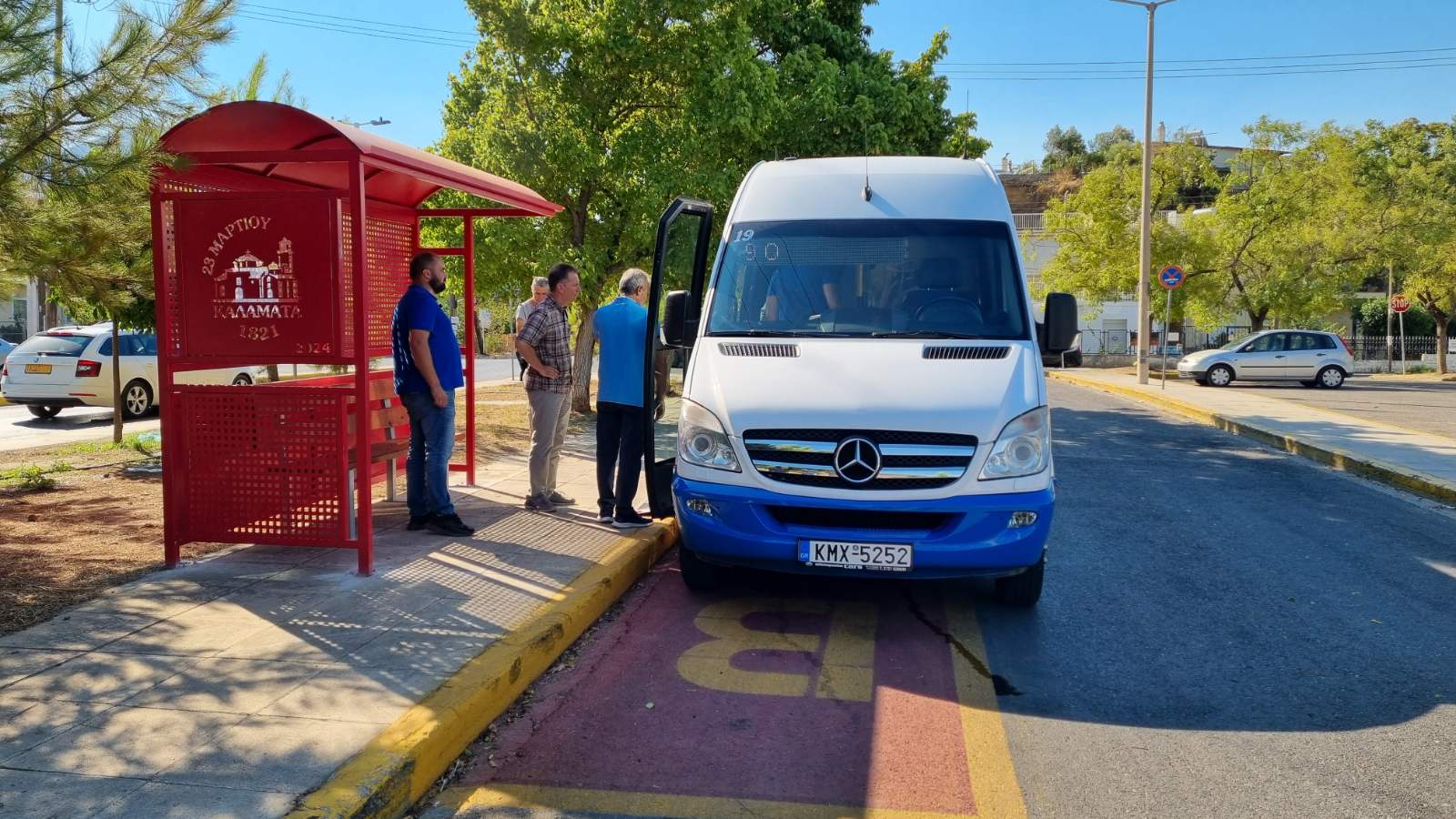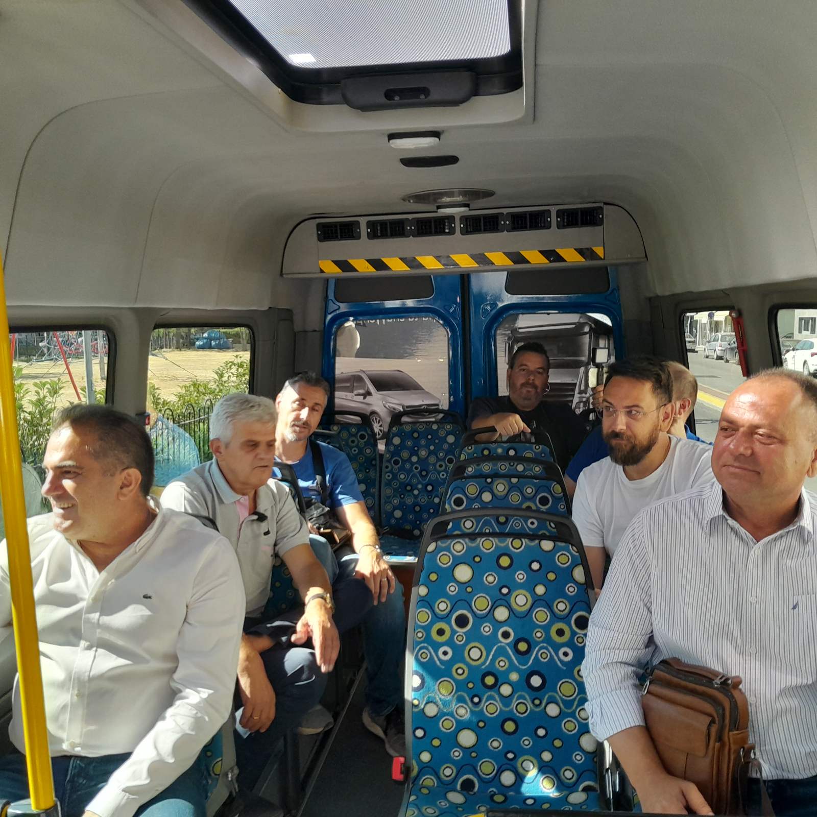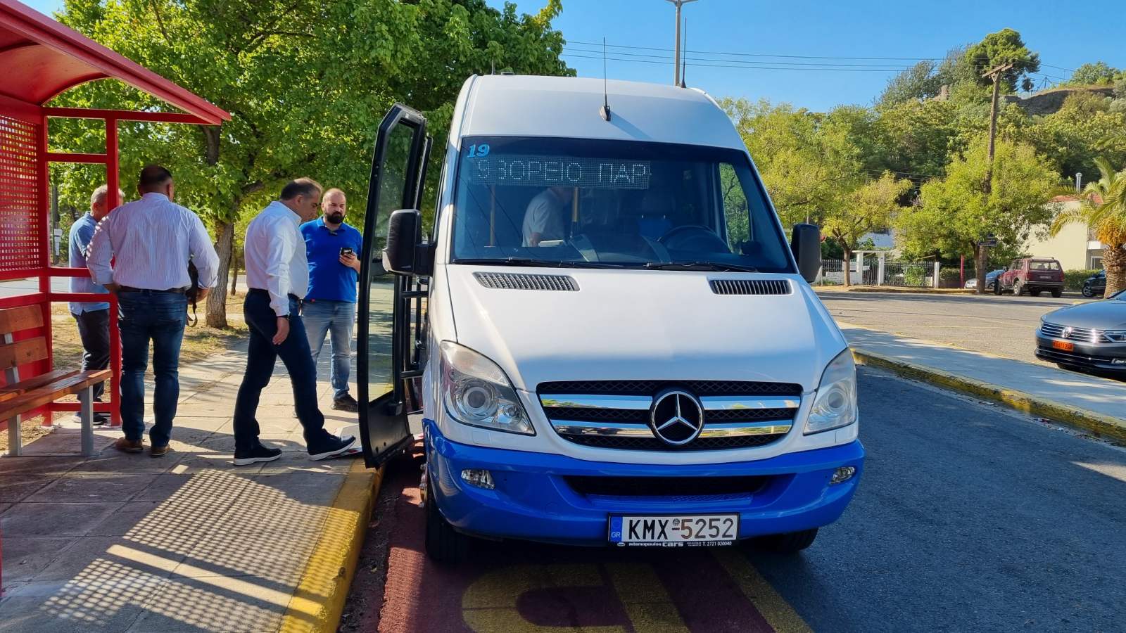 Στο πρώτο δρομολόγιο που ξεκίνησε λίγο μετά τις 10 το πρωί, μετείχαν για συμβολικούς λόγους ο δήμαρχος Θανάσης Βασιλόπουλος, ο αρμόδιος αντιδήμαρχος Παντελής Δρούγας και ο πρόεδρος του Αστικού Θανάσης Πατικόπουλος.