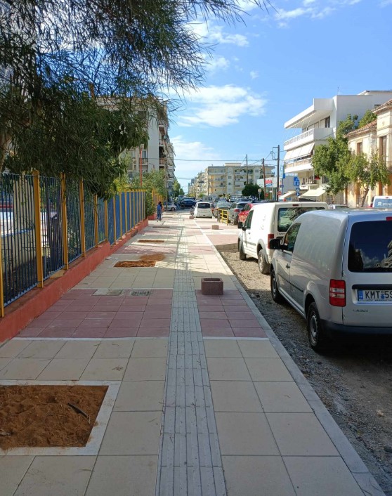 Με το πρώτο τμήμα του έργου να έχει ήδη παραδοθεί στην κυκλοφορία, οι εργασίες συνεχίζονται σύμφωνα με το χρονοδιάγραμμα στην υπόλοιπη οδό, με εργασίες διάστρωσης με κυβόλιθους επί του οδοστρώματος στο τμήμα από Σόλωνος και νότια, ενώ το προηγούμενο διάστημα υπήρξαν παρεμβάσεις στο δυτικό πεζοδρόμιο με διαπλάτυνση των πεζοδρομίων κατά μήκος του τμήματος της οδού.