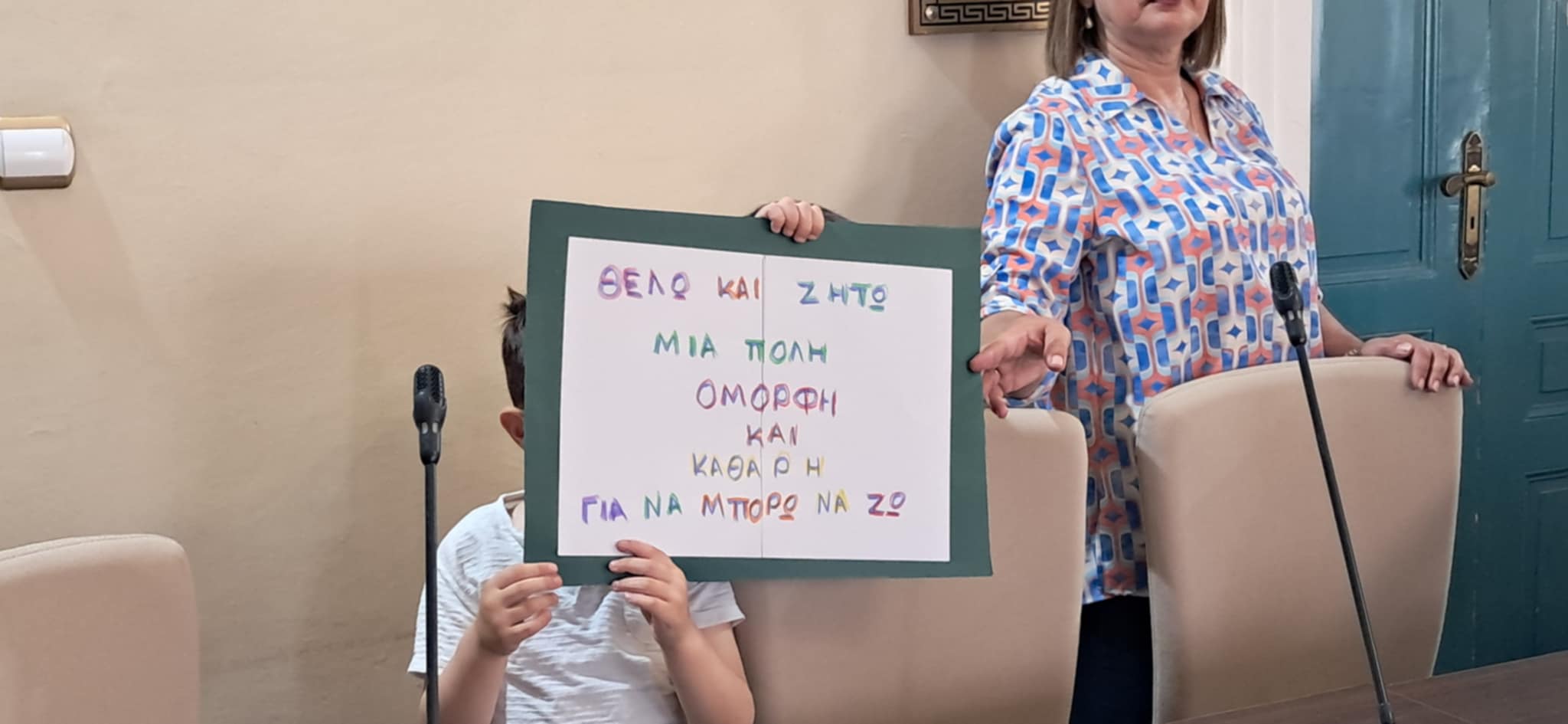 Ζήτησαν περισσότερες παιδικές χαρές, χώρους ψυχαγωγίας και … λουλούδια παντού. Δεν παρέλειψαν, μάλιστα, να χαρίσουν στον Δήμαρχο λουλούδια, λίγο πριν του καταθέσουν και «επίσημα» τα αιτήματά τους, μέσα από ζωγραφιές.