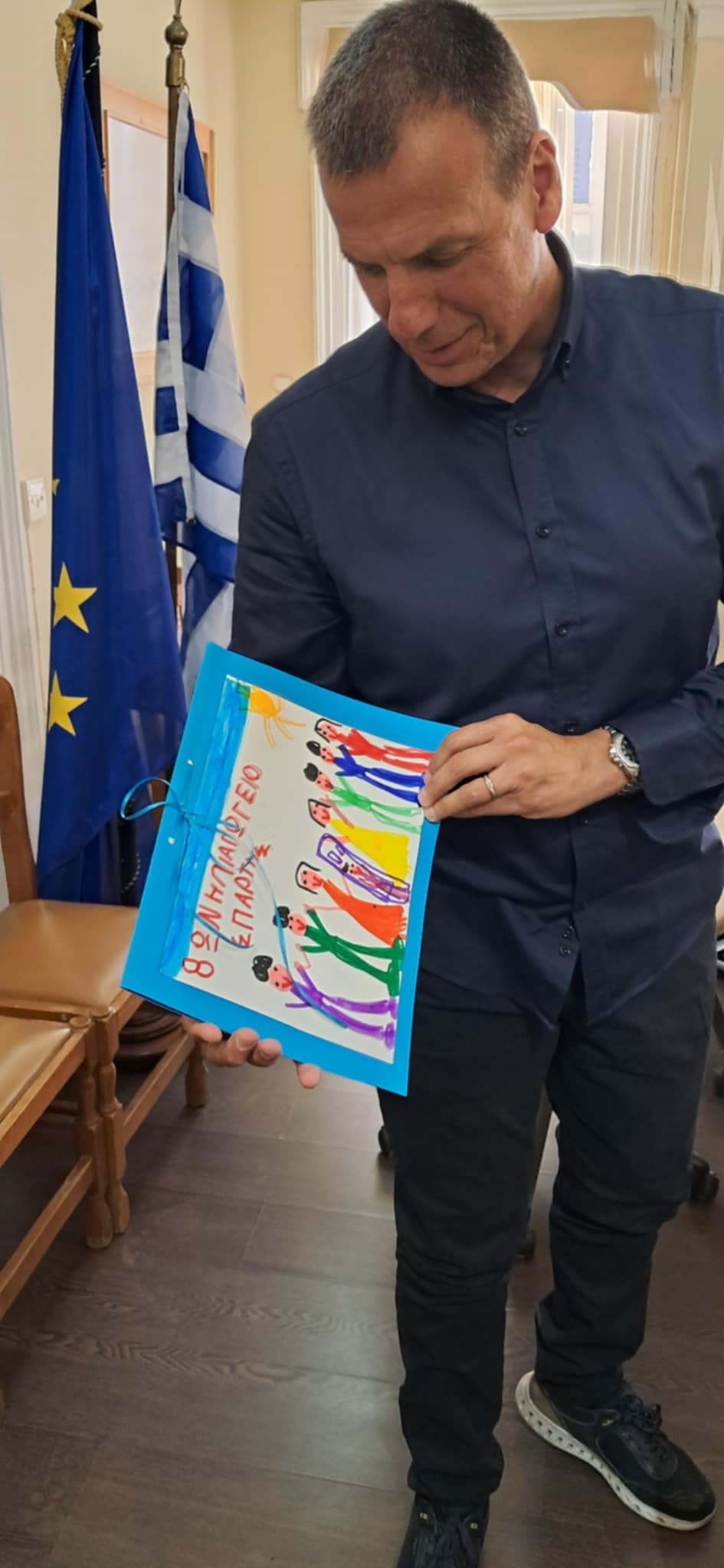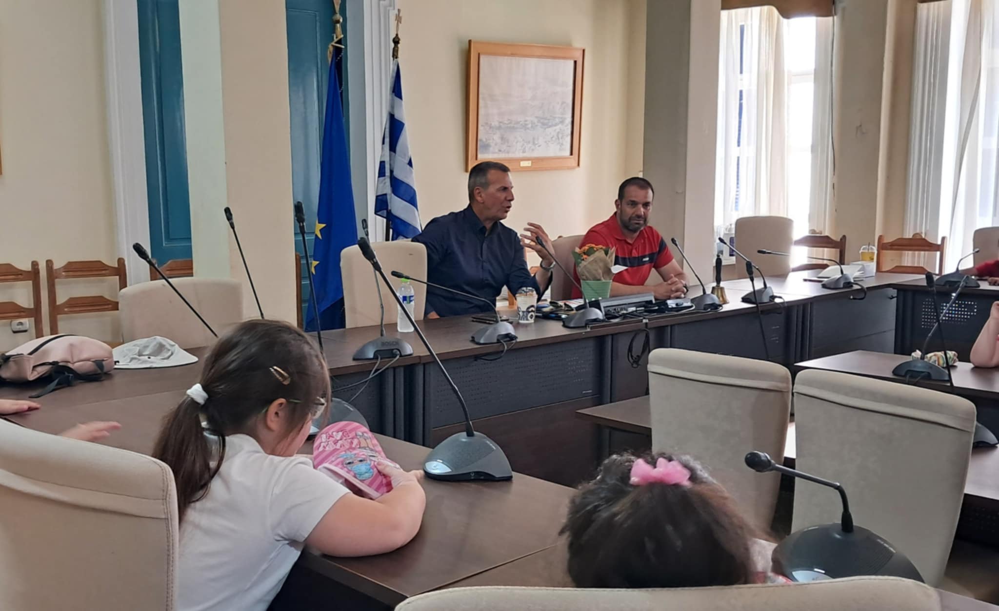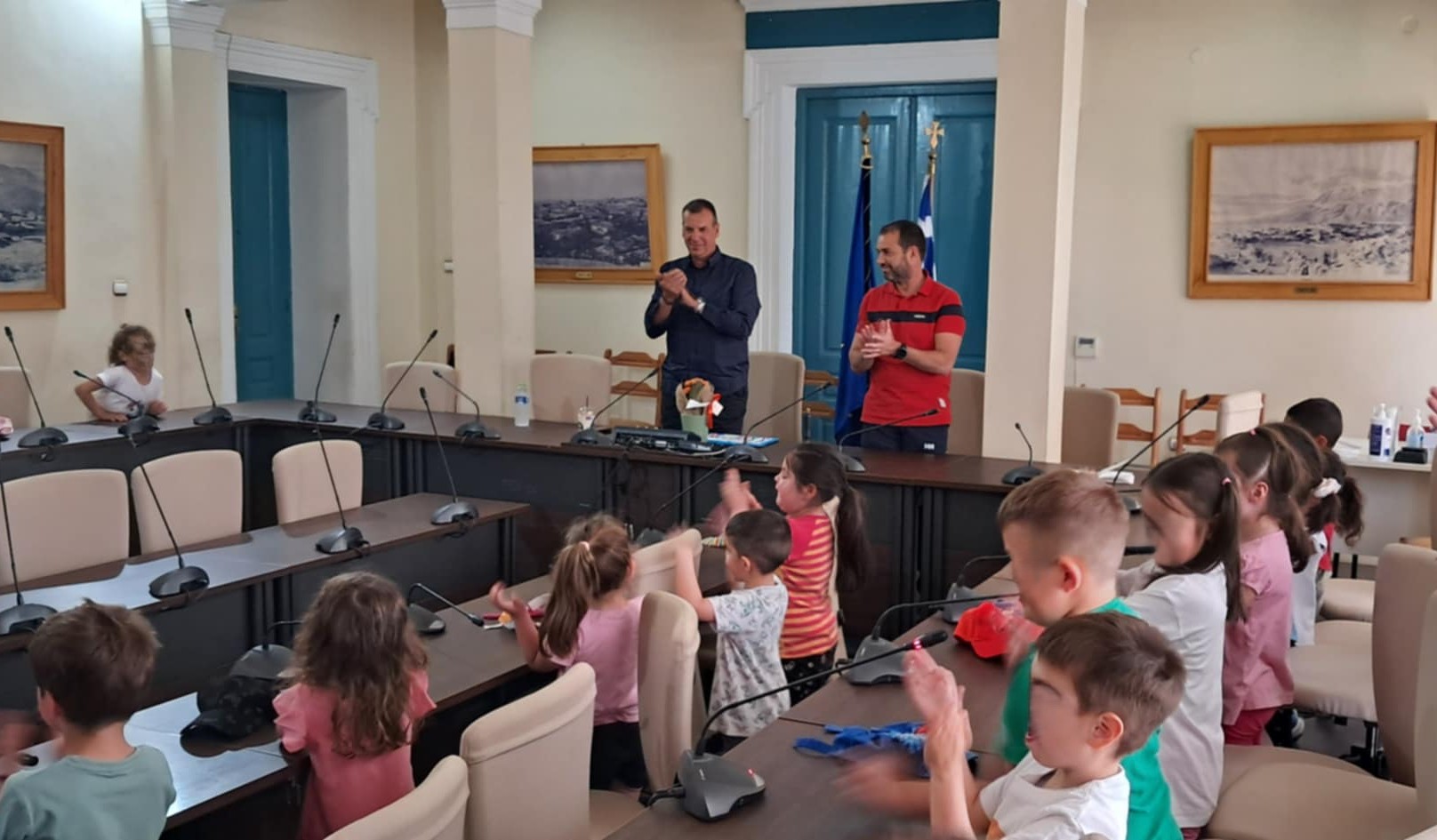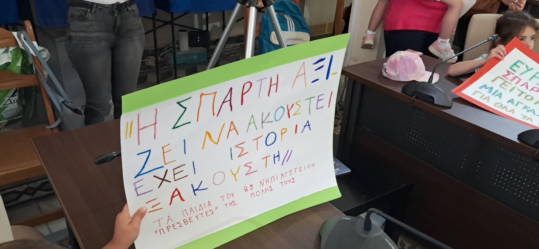 Με κεντρικά συνθήματα: «Η Σπάρτη αξίζει να ακουστεί, έχει Ιστορία ξακουστή», «Θέλω και ζητώ μια πόλη όμορφη και καθαρή για να μπορώ να ζω» και «Τον Ευρώτα αγαπώ, σκουπίδια δεν πετώ, θέλω καθαρό νερό», οι μαθητές του 8ου Νηπιαγωγείου Σπάρτης συζήτησαν με τον Δήμαρχο για τα θέματα που τους απασχολούν.