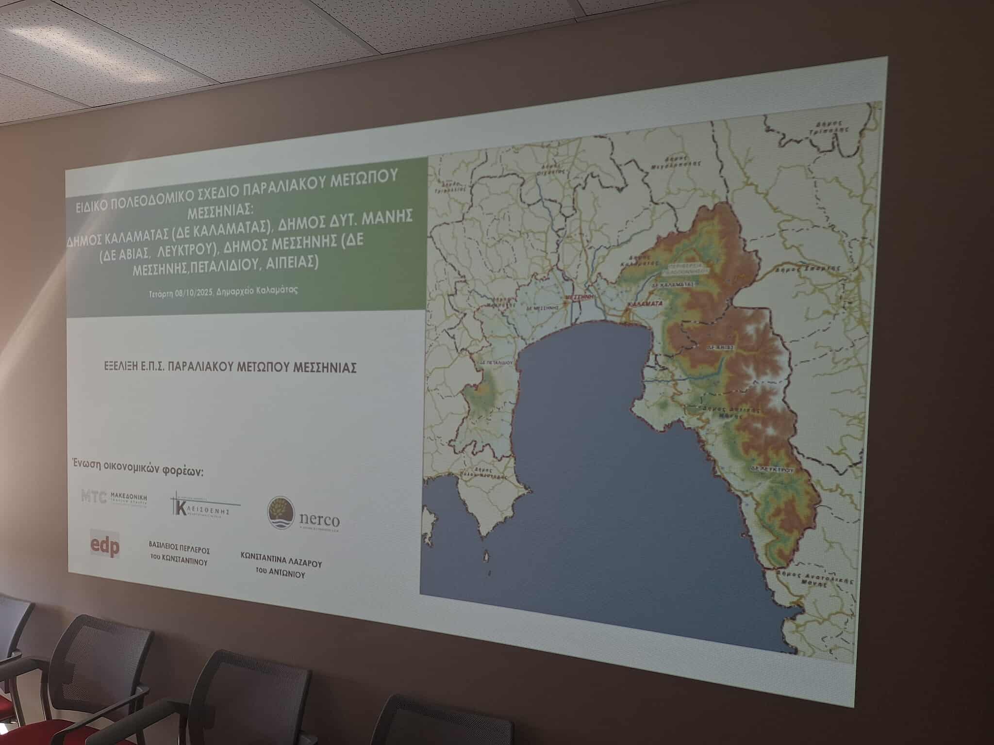 Στην προγραμματισμένη συνάντηση συμμετείχαν εκπρόσωποι του ΤΕΕ και της μελετητικής ομάδα του έργου «Ειδικό Πολεοδομικό Σχέδιο (ΕΠΣ) Παραλιακού Μετώπου Μεσσηνίας», αιρετοί, υπηρεσιακοί παράγοντες και στελέχη των Δήμων Καλαμάτας, Μεσσήνης και Δυτικής Μάνης. Υπήρξε ενημέρωση από την ομάδα μελετητών, επί της μελέτης που συντάσσεται, ενώ επί τάπητος τέθηκαν και θέματα και αφορούν την κάθε περιοχή, με τις ιδιαιτερότητες και τα μοναδικά χαρακτηριστικά που αυτές διαθέτουν.
