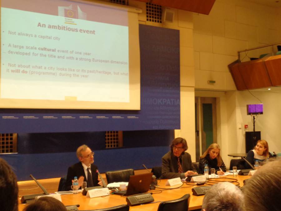 Χαιρετισμό στην εκδήλωση απηύθυναν ο αναπληρωτής υπουργός Πολιτισμού Νίκος Ξυδάκης και ο διευθυντής και συντονιστής της πρώτης «Πολιτιστικής Πρωτεύουσας της Ευρώπης - Αθήνα 1985» Σπύρος Μερκούρης. Στη συνέχεια, παρουσιάστηκε η διαδικασία διεκδίκησης του τίτλου, το χρονοδιάγραμμα, καθώς και αναλυτικά όλα τα κριτήρια που θα πρέπει να αναλυθούν στο φάκελο υποψηφιότητας.