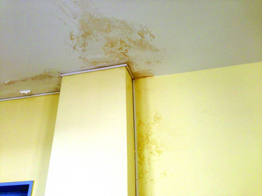 Ετσι κάθε φορά που βρέχει, ο διάδρομος που οδηγεί στην αίθουσα συνεδριάσεων του Δημοτικού Συμβουλίου και στα υπόλοιπα γραφεία πλημμυρίζει με νερά, με αποτέλεσμα οι τοίχοι να έχουν ήδη αρχίσει να διαβρώνονται. Επιπλέον, καραδοκεί και ο κίνδυνος να γλιστρήσει κάποιος στο βρεγμένο μάρμαρο του διαδρόμου.