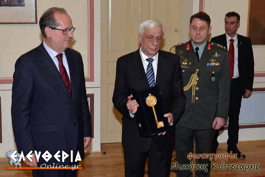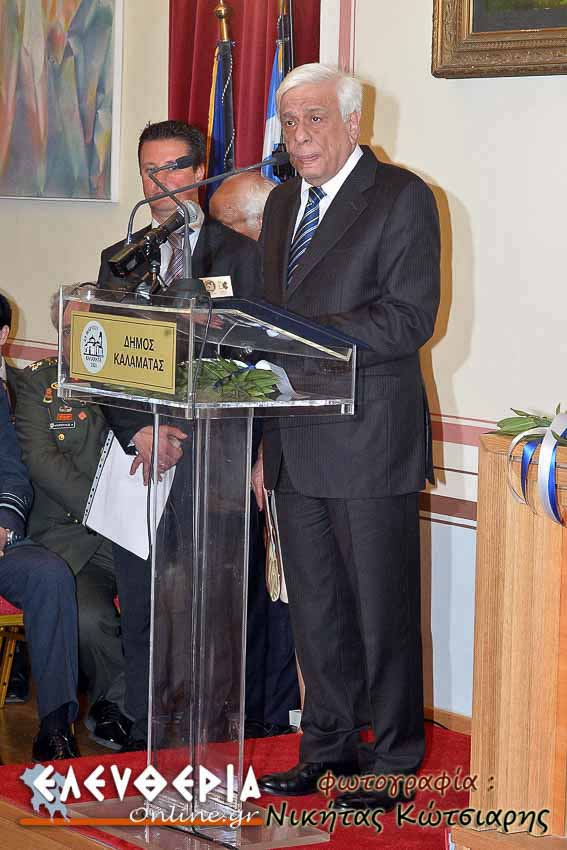 Σε μία επίσημη τελετή και μετά από ομόφωνη απόφαση του Δημοτικού Συμβουλίου Καλαμάτας ο δήμαρχος Παναγιώτης Νίκας απένειμε στον κ. Παυλόπουλοτο χρυσό κλειδί της πόλης, την "Προειδοποίηση εις τα ευρωπαϊκάς αυλάς" και τη σφραγίδα της μεσσηνιακής συγκλήτου.