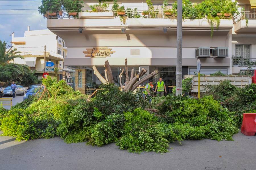 Το εντυπωσιακό δέντρο κόπηκε, καθώς πρόκειται να ανοίξει η Ακρίτα και να γίνει διπλής κατεύθυνσης (θα πηγαίνει και προς την παραλία στο τμήμα μεταξύ Βασ. Γεωργίου και Βασ. Ολγας.