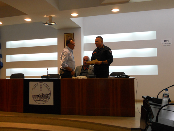 Μια ενδιαφέρουσα πρόταση ήρθε από την πλευρά του αντιδημάρχου Κώστα Γεωργακόπουλου, ο οποίος πρότεινε στον υποδιοικητή της Π.Υ. Καλαμάτας, αντιπύραρχο Δημήτρη Γεωργανά, να εκπαιδευτούν από την Πυροσβεστική οι εθελοντές του Κλιμακίου Πεταλιδίου και για επεμβάσεις σε πλημμυρικά φαινόμενα. Ο υποδιοικητής της Π.Υ. Καλαμάτας αφού ευχαρίστησε και αυτός για την εποικοδομητική συνεργασία με το Δήμο Μεσσήνης τόνισε ότι φέτος αποδείχτηκε στην πράξη η σημασία του «η ισχύς εν τη ενώσει».