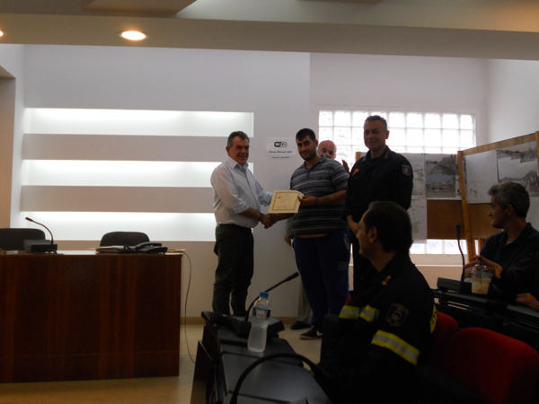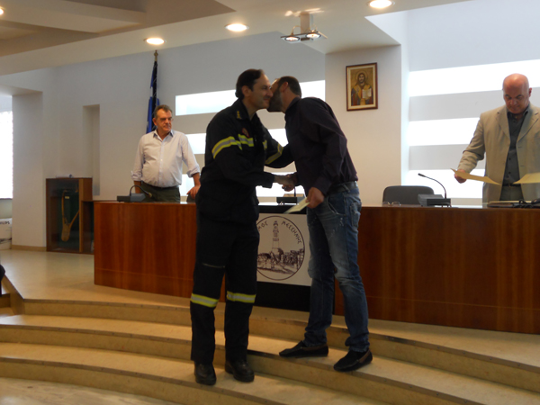 Τους εθελοντές βράβευσαν ο δήμαρχος και οι προαναφερόμενοι αντιδήμαρχοι, οι κ. Γεωργανάς και Σινάπης και ο επιπυραγός Θανάσης Κατσαφάδος, υπεύθυνος του Γραφείου Πυρασφάλειας και Επιχειρήσεων Π.Υ. Καλαμάτας, καθώς και ο αντιδήμαρχος Μένιος Αδαμόπουλος.