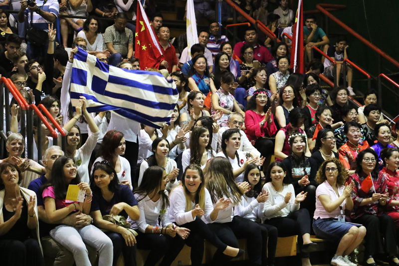 Η τελετή έκλεισε με ένα χορευτικό πάρτι σε μοντέρνους ήχους, με τους πιο νέους να παίρνουν την πρωτοβουλία για χορό. Επίσης τραγούδησαν και οι νικήτριες χορωδίες της Ρωσίας, της Κίνας, της Λάρισας και της Αυστρίας.