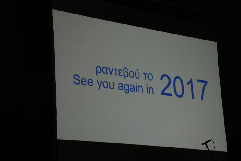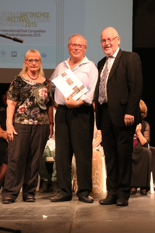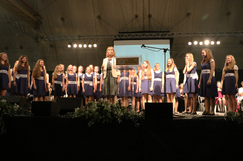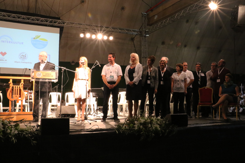 Ακολούθησαν οι χαιρετισμοί του δημάρχου Καλαμάτας Παναγιώτη Νίκα ο οποίος ανανέωσε το ραντεβού για το 2017 και του καλλιτεχνικού διευθυντή της Interkultur Κριστιάν Γιούγκρεν. Μετά όλες οι χορωδίες μαζί είπαν "Το περιγιάλι το κρυφό" και ακολούθησε βίντεο το οποίο επιμελήθηκε ο Δήμος Καλαμάτας. Περιλάμβανε στιγμές από τις τέσσερις αυτές ημέρες στην πόλη, ενώ έτυχε εξαιρετικής υποδοχής από τις χορωδίες, που ενθουσιάζονταν κάθε φορά που έβλεπαν δικά τους στιγμιότυπα. Στη συνέχεια παρουσιάστηκε το βίντεο από την Interkultur, για το επόμενο μεγάλο ραντεβού του χρόνου στο Σότσι της Ρωσίας και μετά οι απονομές των βραβείων. Οι οποίες έγιναν από τον καλλιτεχνικό διευθυντή και δύο κριτές από πλευράς της Interkultur, ενώ από πλευράς Καλαμάτας βραβεία απένειμαν ο δήμαρχος Παν. Νίκας, ο πρόεδρος της "Φάρις" Θανάσης Ηλιόπουλος και η Τζίνα Καρέλια.