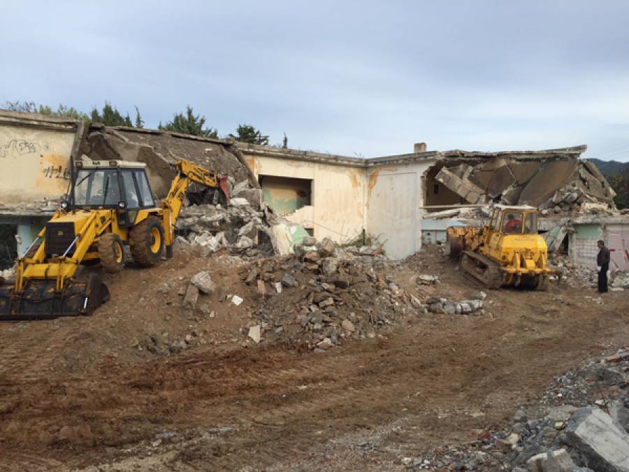 Την πρόοδο των εργασιών κατεδάφισης του τουριστικού ξενώνα της Χώρας διαπίστωσε ο δήμαρχος Πύλου - Νέστορος Δημήτριος Καφαντάρης, σε επίσκεψη που έκανε στο σημείο προχθές με την Τεχνική Υπηρεσία του δήμου.
