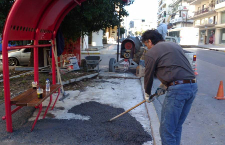 Τσιμέντο έριξαν σε στάση του αστικού ΚΤΕΛ Καλαμάτας, εργάτες του δήμου.