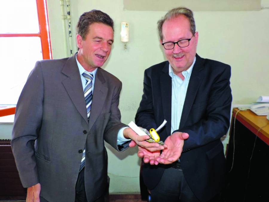 Γράφτηκε από την ΕΛΕΥΘΕΡΙΑ OnlineΟ Γιώργος Μπρούμας, πρώην δήμαρχος Αριος και στέλεχος της Διεύθυνσης Κυκλοφορίας του ΟΣΕ, παρέδωσε τα κλειδιά στο δήμαρχο Παναγιώτη Νίκα, που εξέφρασε την ευχή να επαναλειτουργήσει το τρένο, ενώ επανέλαβε ότι σε περίπτωση επαναλειτουργίας του προαστιακού, ο Δήμος Καλαμάτας θα συμμετάσχει οικονομικά.