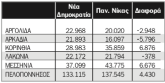 Στην Κορινθία ο νέος περιφερειάρχης έλαβε 6.876 περισσότερες ψήφους από τη Ν.Δ. ενώ στους υπόλοιπους νομούς το κόμμα της αξιωματικής αντιπολίτευσης έλαβε περισσότερες ψήφους από το συνδυασμό "Πρωτοβουλία για την Πελοπόννησο.
