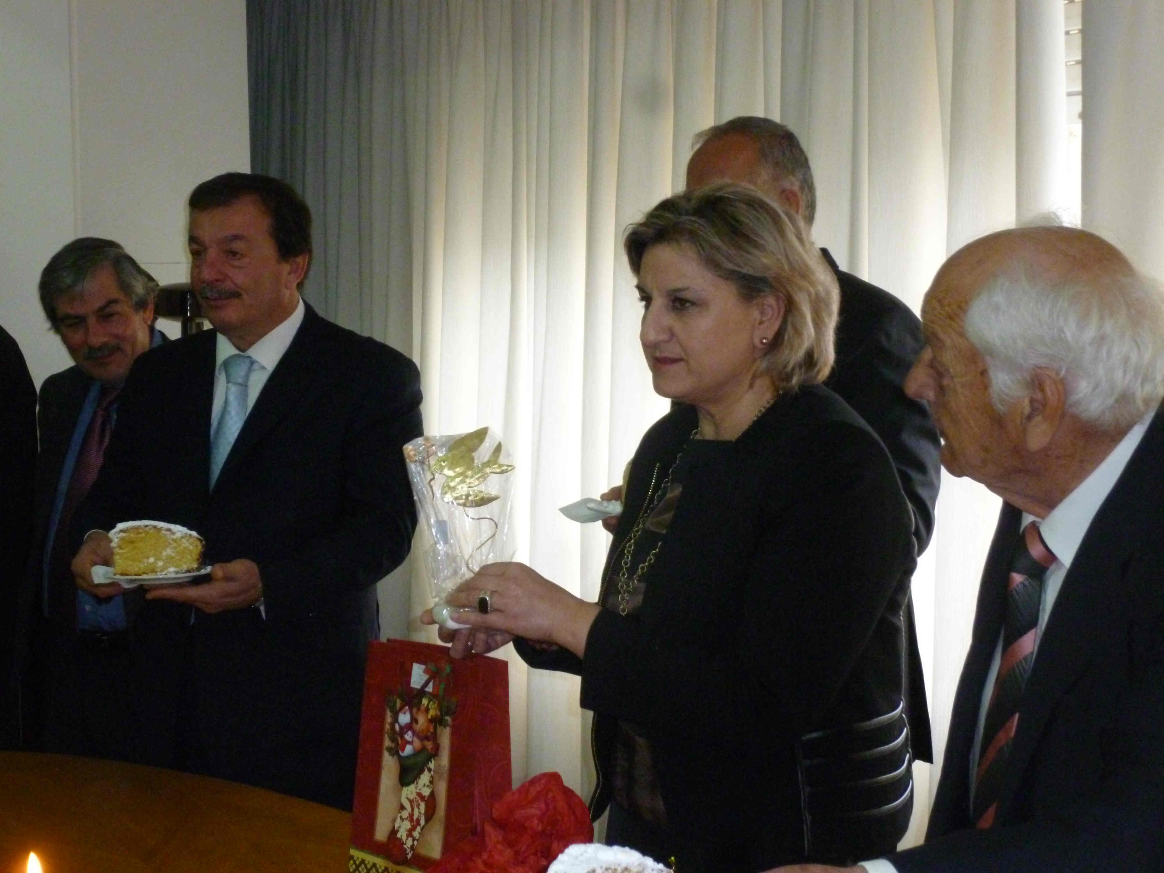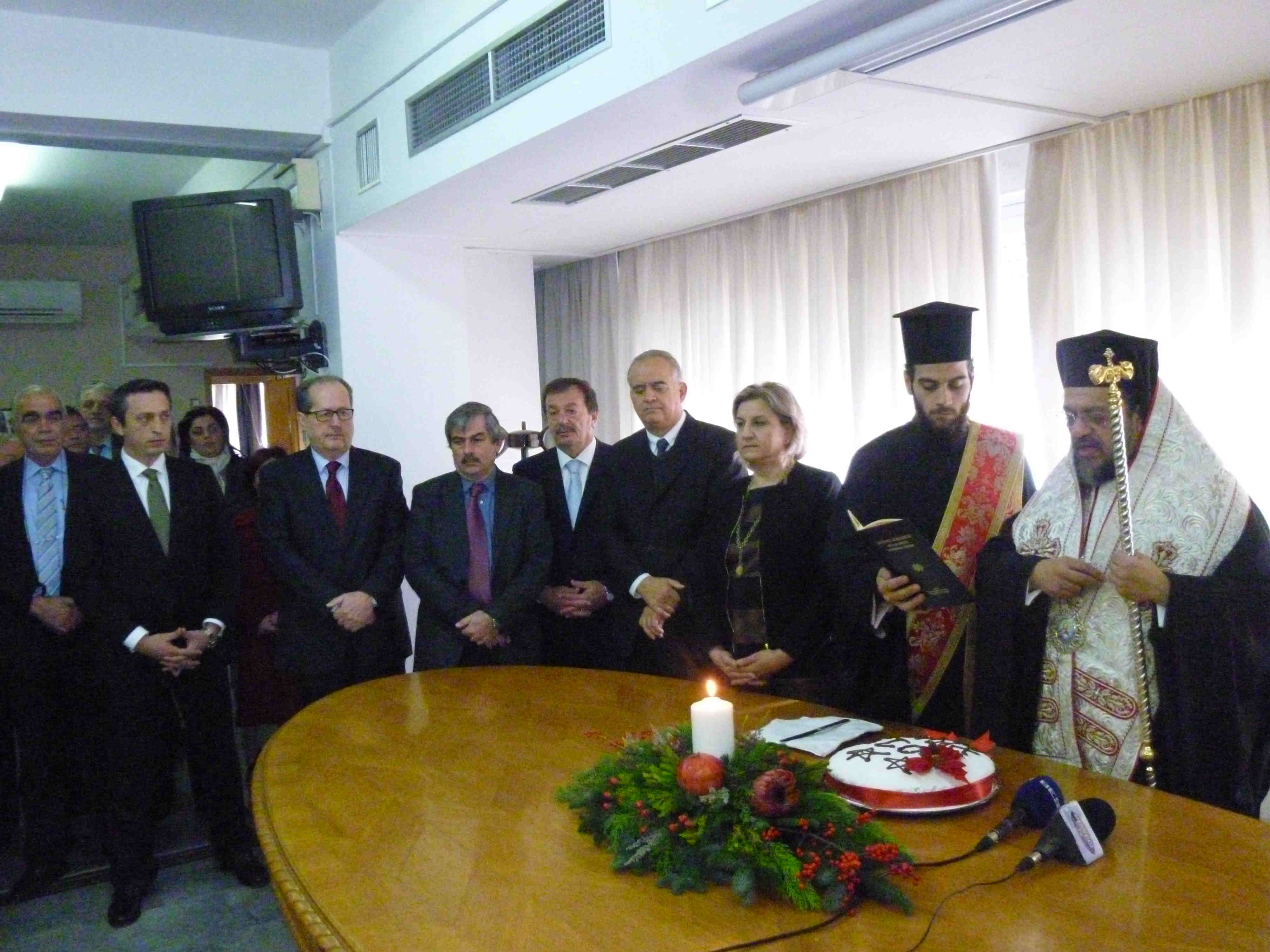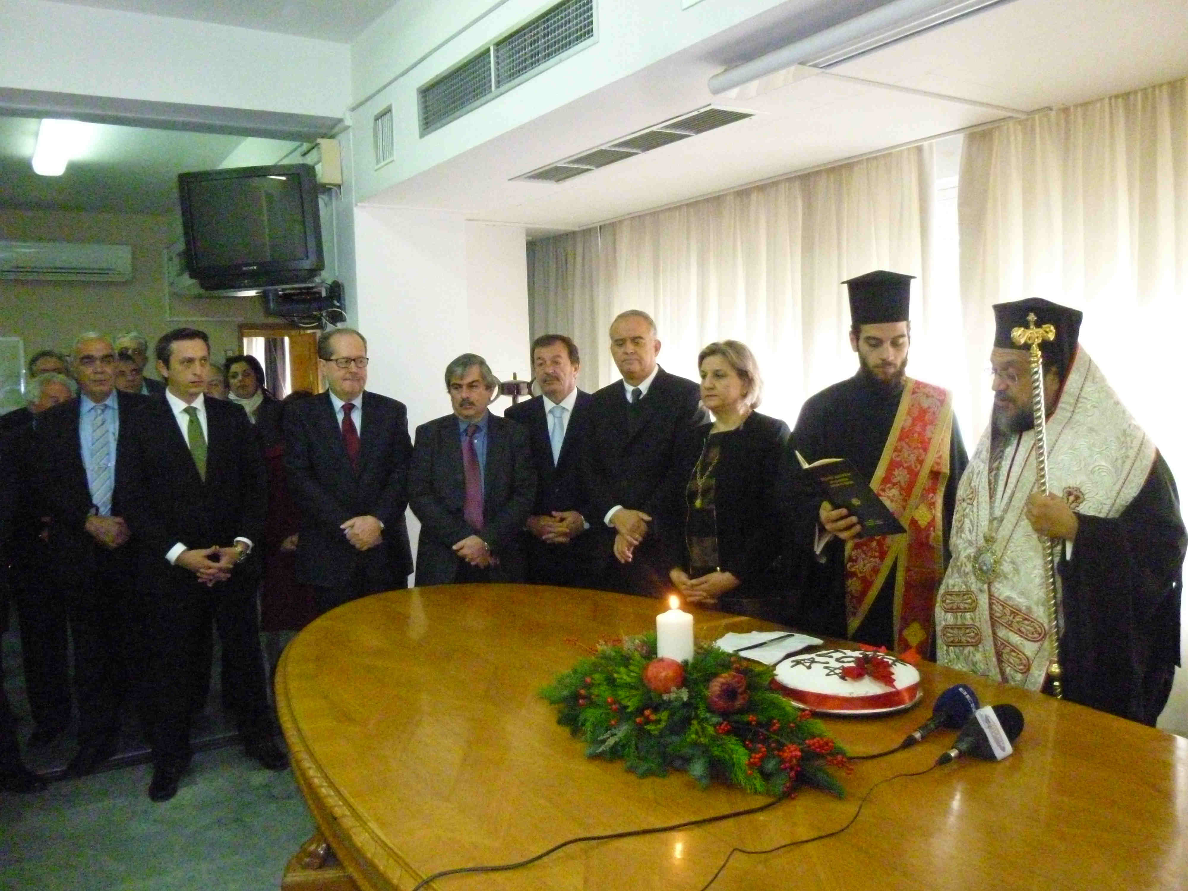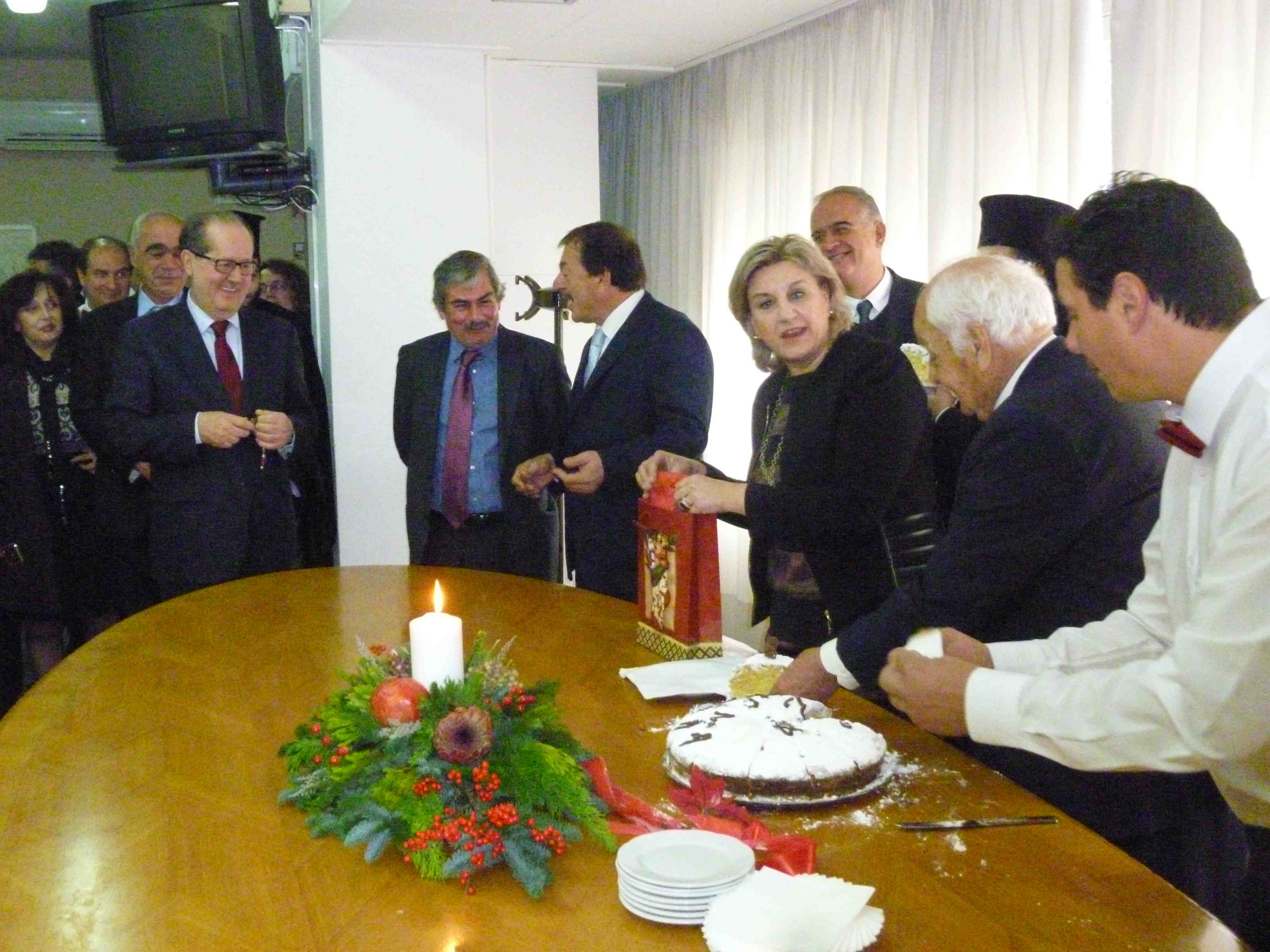 Την πίτα ευλόγησε ο μητροπολίτης Μεσσηνίας Χρυσόστομος, ο οποίος ευχήθηκε να κρατηθεί η συνοχή στη χώρα μας και να μην πέσει στο κενό η προσπάθεια του κόσμου. Τις ευχές τους με πολιτικά μηνύματα έδωσαν η αντιπεριφερειάρχης Ελένη Αλειφέρη, ο υφυπουργός Εθνικής Αμυνας Γιάννης Λαμπρόπουλος, οι (μέχρι πρότινος) βουλευτές Δημήτρης Σαμπαζιώτης και Θανάσης Πετράκος, ο δήμαρχος Καλαμάτας Παναγιώτης Νίκας και οι περιφερειακοί σύμβουλοι των μειοψηφιών Νίκος Πατσαρίνος και Δήμητρα Λυμπεροπούλου. Το φλουρί της πίτας έπεσε στο διευθυντή Διοικητικού και Οικονομικού της Περιφερειακής Ενότητας Μεσσηνίας Δημήτρη Μουντζούρη, ο οποίος πήρε ως δώρο από την κ. Αλειφέρη ένα διακοσμητικό - συμβολικό για την ειρήνη. Νωρίτερα στο μητροπολιτικό ναό της Υπαπαντής τελέστηκε δοξολογία για την πρώτη μέρα του 2015, στην οποία χοροστάτησε ο κ. Χρυσόστομος.