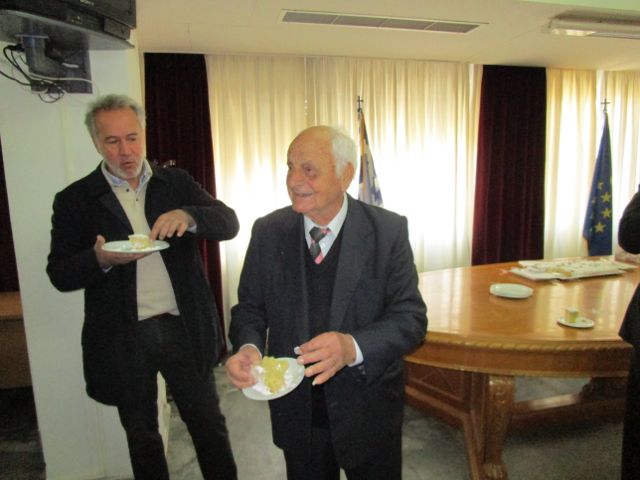Την πίτα ευλόγησε ο μητροπολίτης Μεσσηνίας Χρυσόστομος, που ευχήθηκε κάθε καλό για την Καλαμάτα και το νομό.