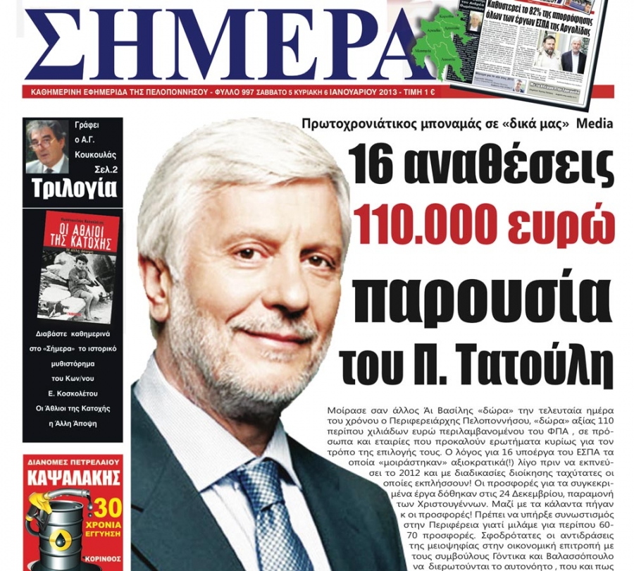 - "Παρουσίαση και προβολή του Τοπικού Σχεδίου Δράσης Κοινωνικής Ένταξης" 18.450 ευρώ στην"Πελοπόννησος ΑΕ".
