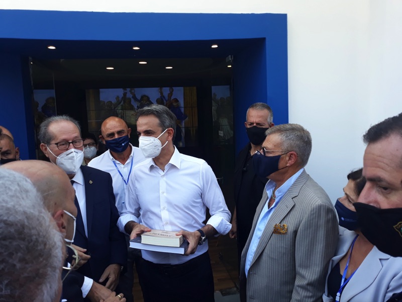 Εκεί τον υποδέχθηκε ο περιφερειάρχης Παναγιώτης Νίκας, ο οποίος μεταξύ άλλων προσέφερε στον κ. Μητσοτάκη αντίγραφο της σφραγίδας της Πελοποννησιακής Γερουσίας και της σφραγίδας της Ελευθερίας, δημιουργήματα και τα δύο της Σχολής Αργυροχρυσοχοΐας της Στεμνίτσας, καθώς επίσης αντίγραφο του Ευαγγελίου του Αγώνα από τη Μονή Σαλώνων και δύο επετειακές εκδόσεις για την Επανάσταση του 1821 και την Πελοπόννησο.