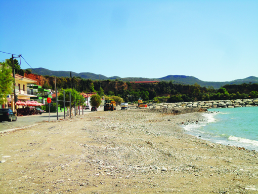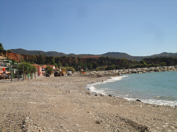 Κατά τα άλλα το έργο προχωράει με εντατικούς ρυθμούς μετά τη δίμηνη διακοπή του καλοκαιριού. Εχουν φτιαχτεί οι 4 από τους 7 κάθετους προβόλους που προβλέπονται, ενώ δουλεύονται ο 5ος και 6ος στη βόρεια πλευρά, προς την Παλιόχωρα.