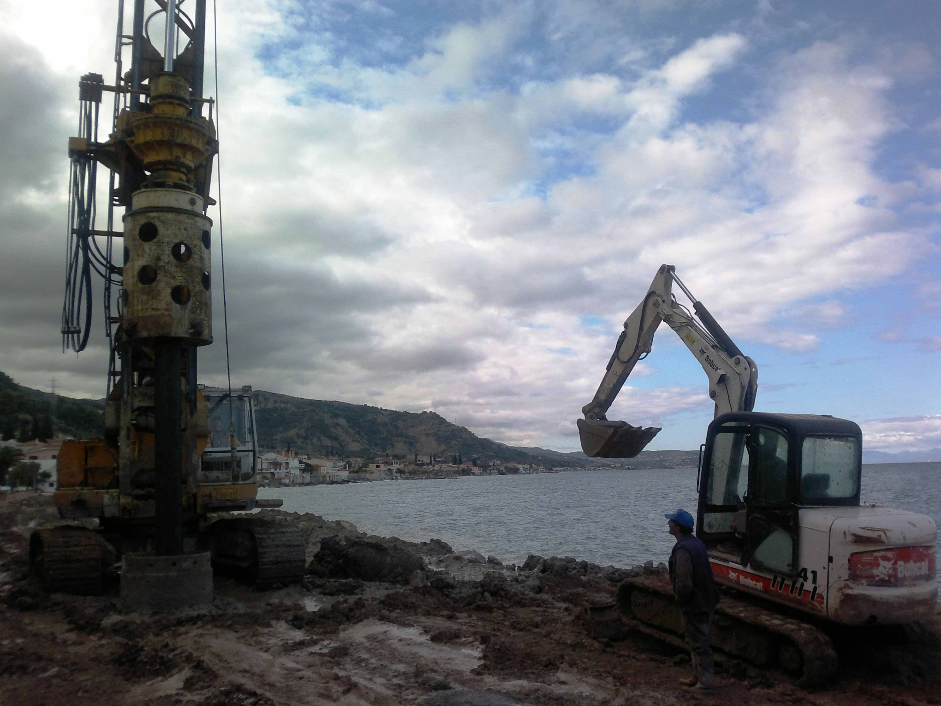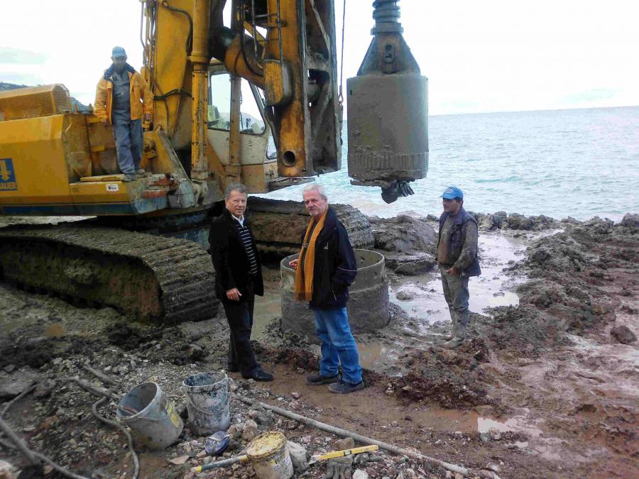 Προβλέπεται η κατασκευή 131 φρεατοπασσάλων, διαμέτρου 1,20 μ., σε επαφή μεταξύ τους ώστε να δημιουργηθεί ένας διαφραγματικός πασσαλότοιχος, δηλαδή ένα μέτωπο χωρίς διάκενα, το οποίο θα προστατεύει την ακτή και τα θεμέλια των οικιών και συγχρόνως θα σταθεροποιεί την περιοχή της κατολίσθησης. Οι πάσσαλοι, μήκους περίπου 20,00 μ., οπλισμένοι και άοπλοι, εμπήγνυνται στο έδαφος, στην κορυφή τους δε συνδέονται μεταξύ τους με τον λεγόμενο κεφαλόδεσμο, ο οποίος ενισχύει το συνεχές μέτωπο των πασσάλων, συγχρόνως είναι και οδηγός για την καθ’ ύψος τακτοποίηση του γύρω χώρου. Ο χώρος ανάντη του κεφαλόδεσμου καλύπτεται με ίζημα της περιοχής, ενώ στο χώρο κατάντη αυτού τοποθετείται, σε πλάτος περίπου 4,50 μ., λιθοριππή για λόγους προστασίας και απομείωσης της κυματικής ενέργειας. Μετά το πλάτος αυτό, η λιθοριππή καταλήγει με κλίση στο βυθό της θάλασσας.
