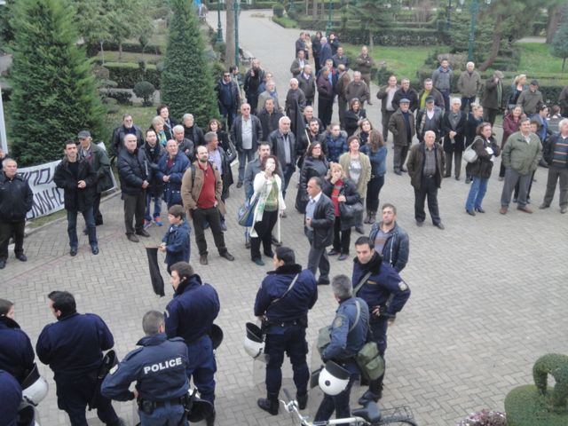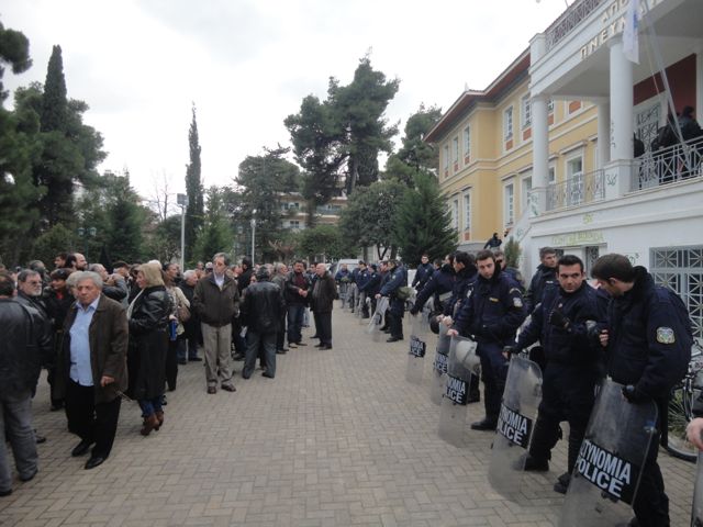 Τα ΜΑΤ δεν επιτρέπουν ούτε σε αντιδημάρχους και εκπροσώπους φορέων να μπουν στην αίθουσα.