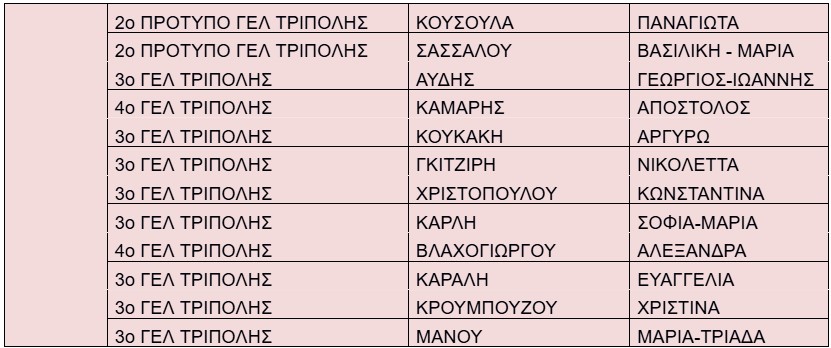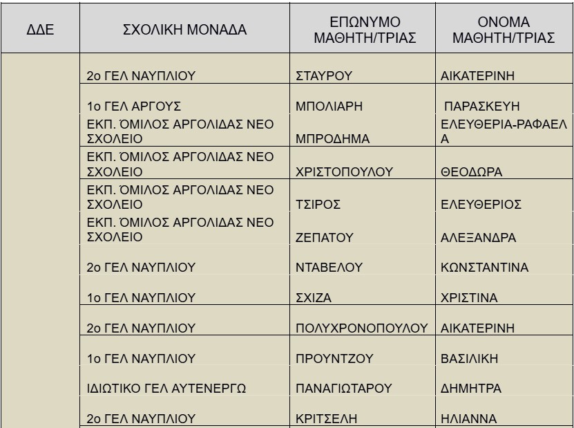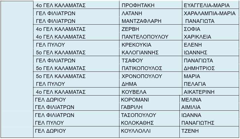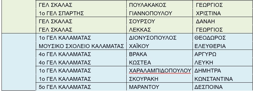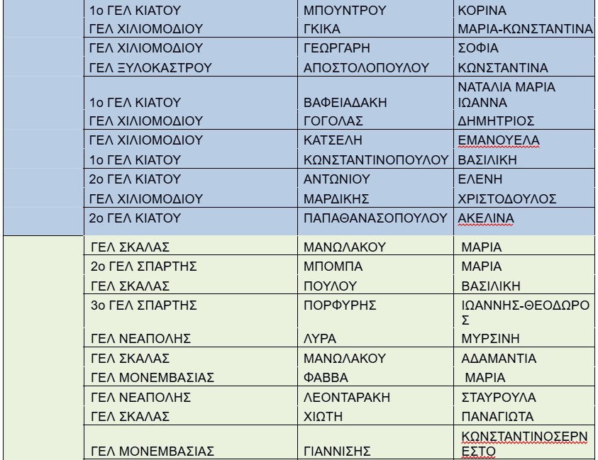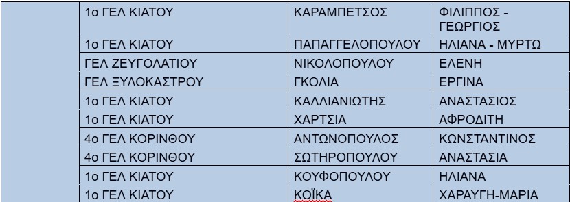 Ακολουθεί η λίστα των μαθητριών και μαθητών του Περιφερειακού Συμβουλίου Νέων: