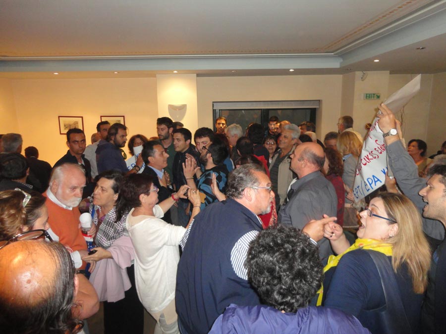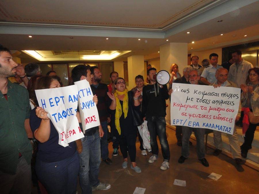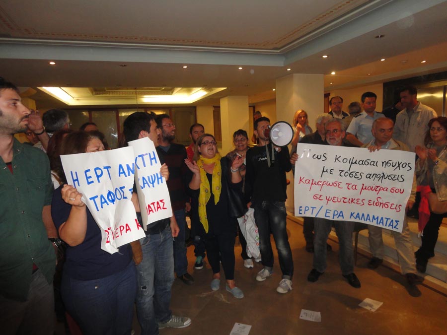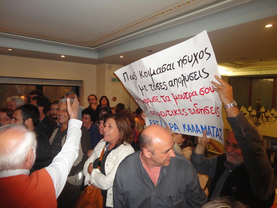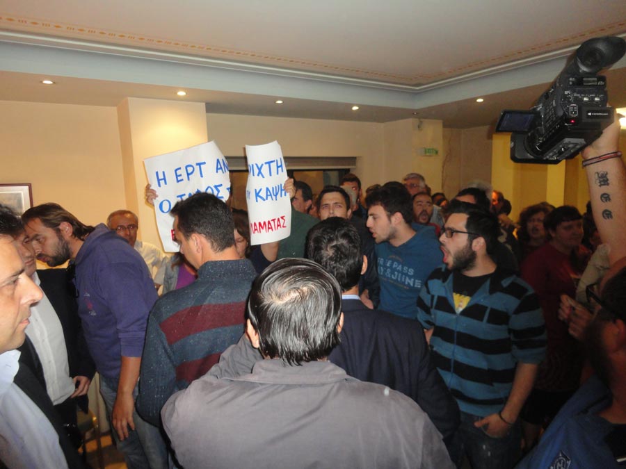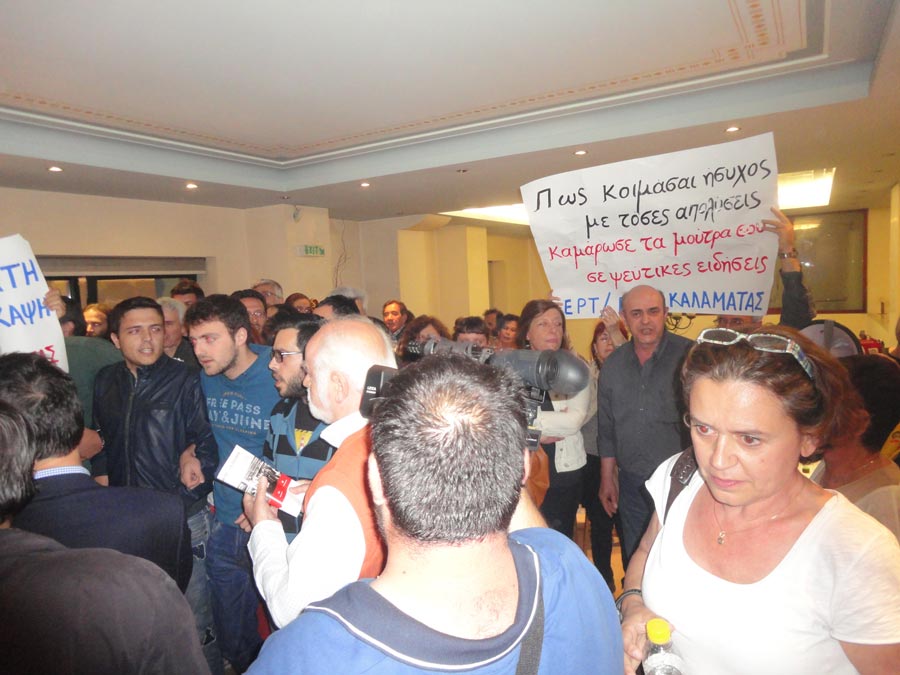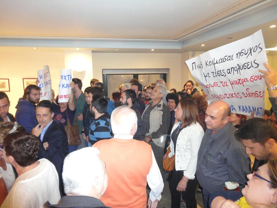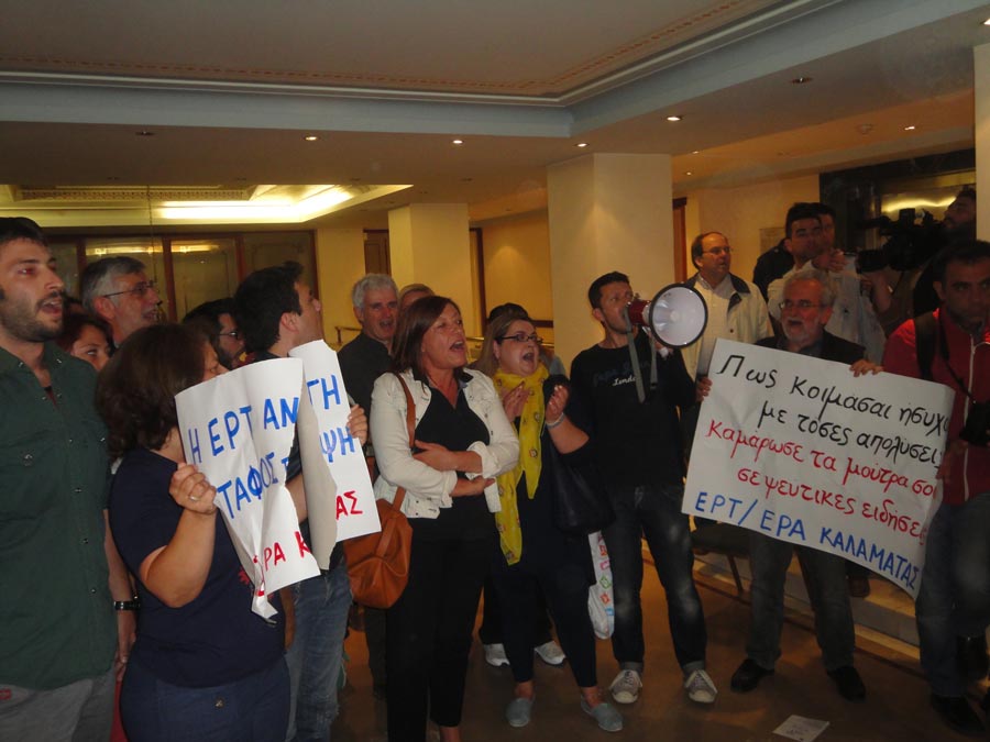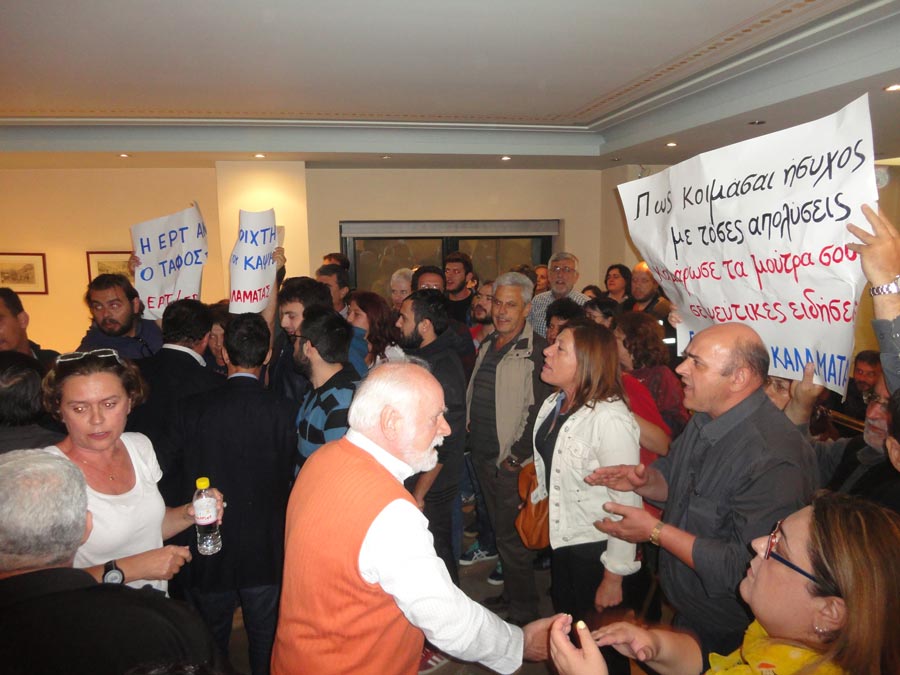 Ο πρώην υφυπουργός Δημόσιας Ραδιοτηλεόρασης βρίσκεται στην Καλαμάτα στο πλαίσιο προεκλογικής εκδήλωσης της "Ελιάς" στην Καλαμάτα. Οι διαμαρτυρόμενοι έφτασαν μέχρι έξω από την αίθουσα της εκδήλωσης στο ξενοδοχείο "Rex" και μαζί με πολίτες που συμπαραστέκονται στον αγώνα τους φώναξαν συνθήματα τόσο κατά του κ. Καψή, όσο και κατά της κυβέρνησης.
