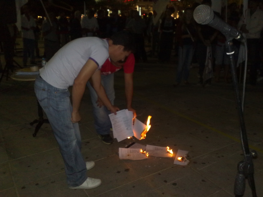 Με μεγάλη επιτυχία πραγματοποιήθηκε το χτεσινό συλλαλητήριο του ΠΑΜΕ. Η συμμετοχή ήταν μεγάλη με αποτέλεσμα να μαζευτούν εκατοντάδες εντολές πληρωμής. Στην συγκέντρωση μίλησε ο Αριστείδης Δαμαλάς μέλος της Γραμματείας του ΠΑΜΕ και επίσης διαβάστηκαν οι αποφάσεις των σωματείων που έχουν πάρει απόφαση για οργανωμένη άρνηση πληρωμής. Στο τέλος της ομιλίας συμβολικά βάλαμε φωτιά σε κάποια απο τα εντάλματα πληρωμών και μετά ακολούθησε πορεία στους κεντρικούς δρόμους της πόλης. Ανανεώνουμε το ραντεβού μας