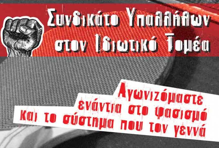 "Το Συνδικάτο Υπαλλήλων στον ιδιωτικό τομέα νομού Μεσσηνίας με ομόφωνη απόφαση του Διοικητικού Συμβουλίου εκφράζει την κάθετη αντίθεση του στην πραγματοποίηση από την μεριά της νεοναζιστικής οργάνωσης Χρυσής Αυγής πανελλαδικού φεστιβάλ μίσους στην πόλη μας, Θεωρούμε απαράδεκτο τέτοια φεστιβάλ που καλλιεργούν το μίσος το ρατσισμό και την ξενοφοβία να πραγματοποιούνται για αυτό και απαιτούμε από τους αρμοδίους φορείς να ανακαλέσουν την άδεια για το συγκεκριμένο φεστιβάλ .Αν και γνωρίζουμε παρά πολύ καλά ότι μόνο το εργατικό κίνημα μπορεί να αντιμετωπίσει τον ρατσισμό και την νεοναζιστική οργάνωση που έχει ρίζες στο παρακράτος .Για τον σκοπό αυτό θα συμμετέχουμε στην σύσκεψη τον σωματείων που διοργανώνετε από το σωματείο εργαζομένων του νοσοκομείου την Τέταρτη 19/6