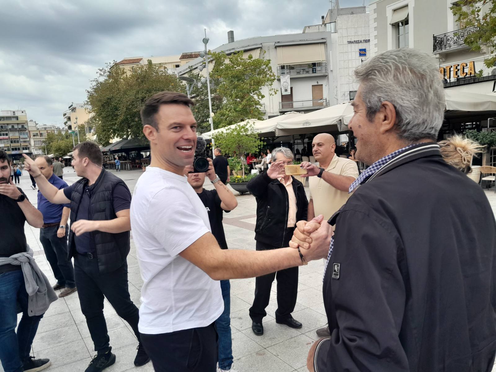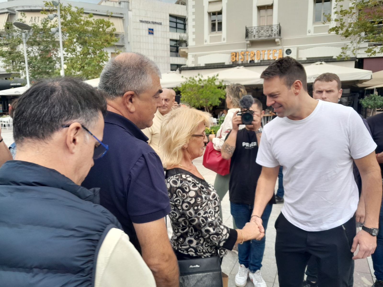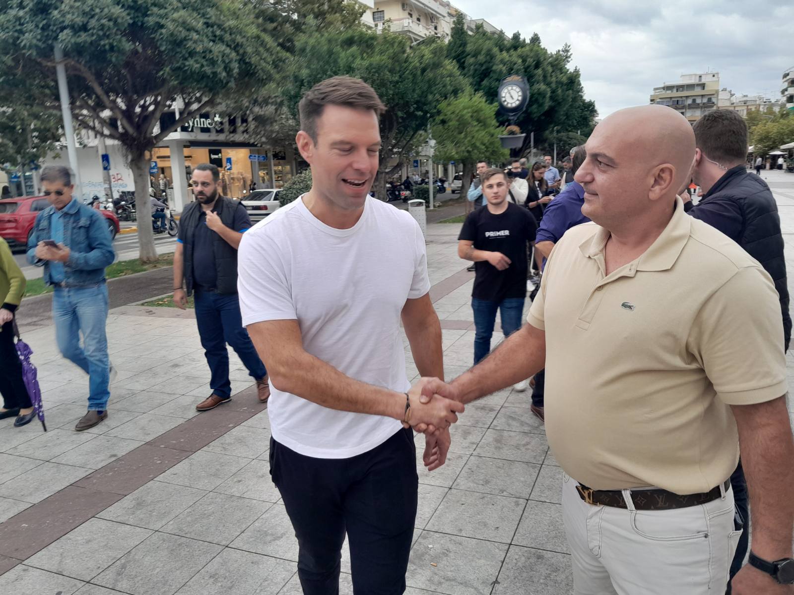 Νωρίτερα είχε επισκεφθεί την λαϊκή αγορά στη Μεγαλόπολη και συνεχίζοντας επισκέφθηκε την κεντρική πλατεία της Σπάρτης.