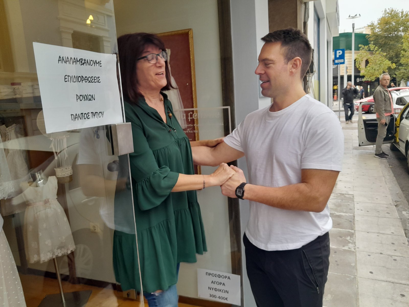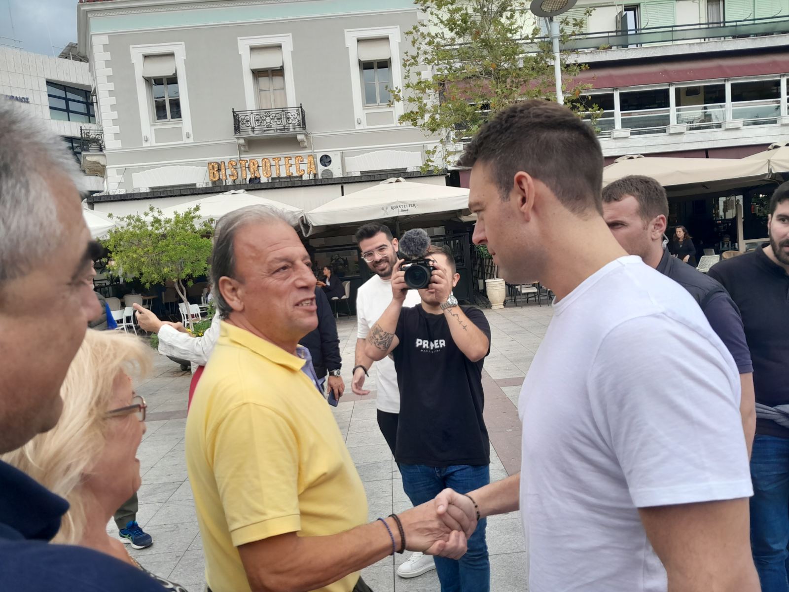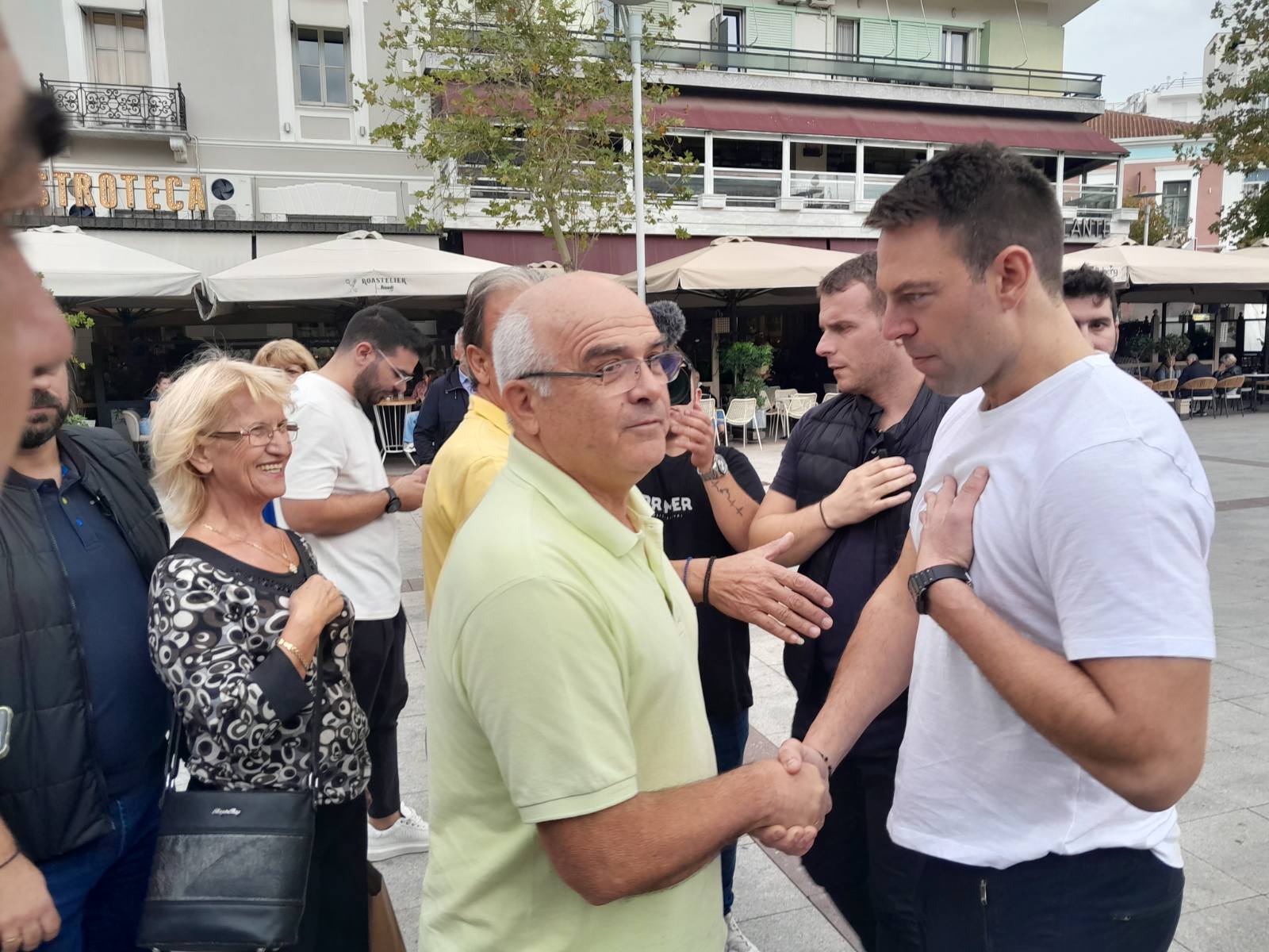 Νωρίτερα είχε επισκεφθεί την λαϊκή αγορά στη Μεγαλόπολη και συνεχίζοντας επισκέφθηκε την κεντρική πλατεία της Σπάρτης.