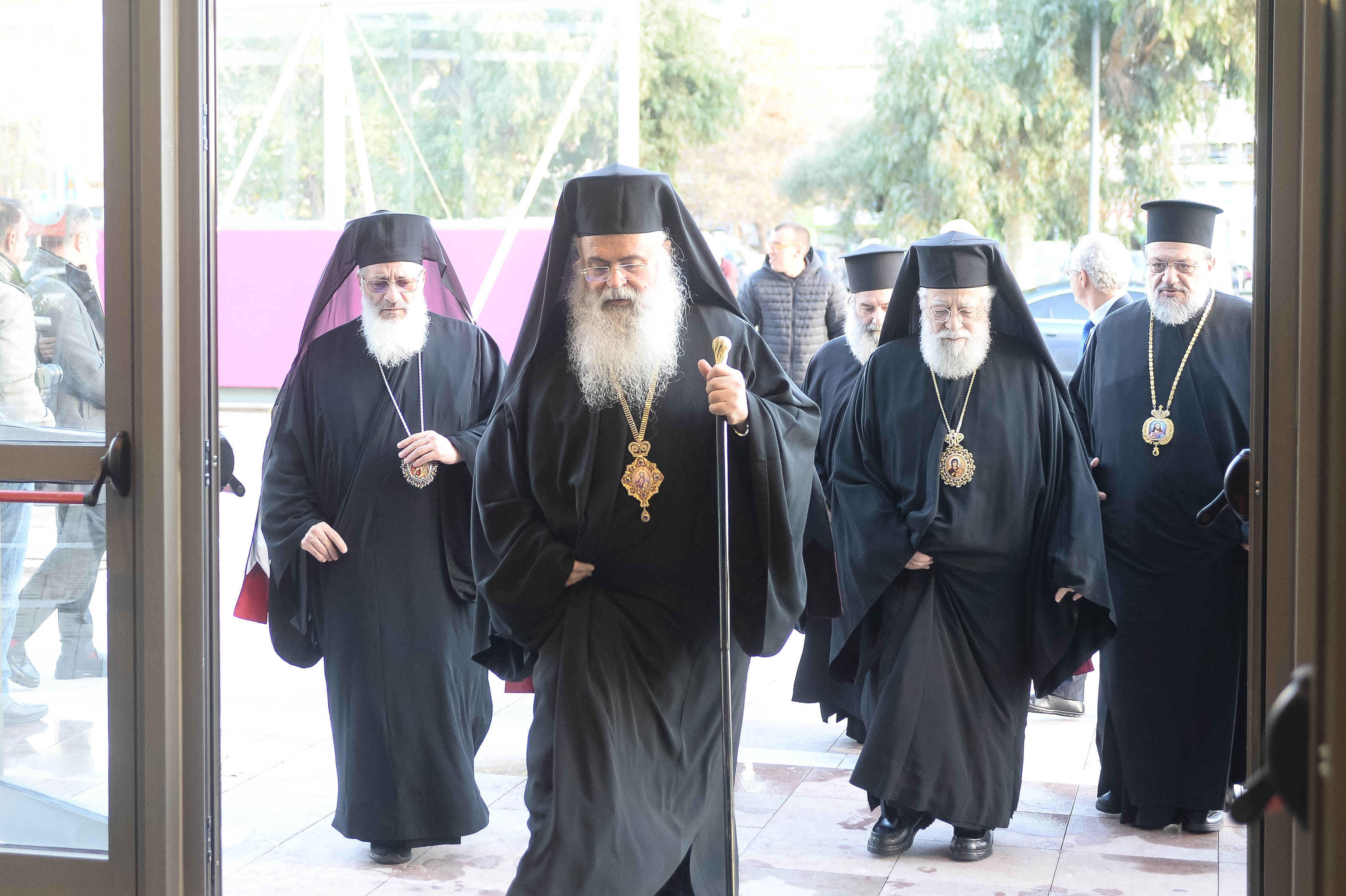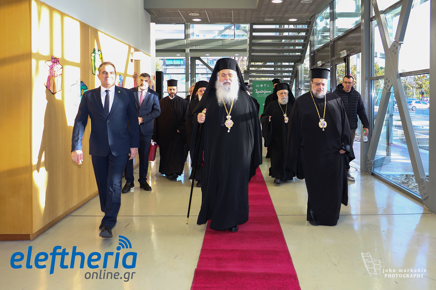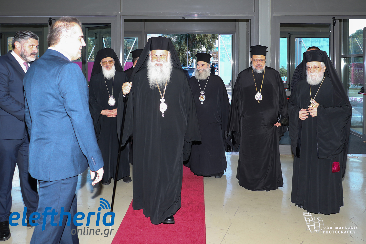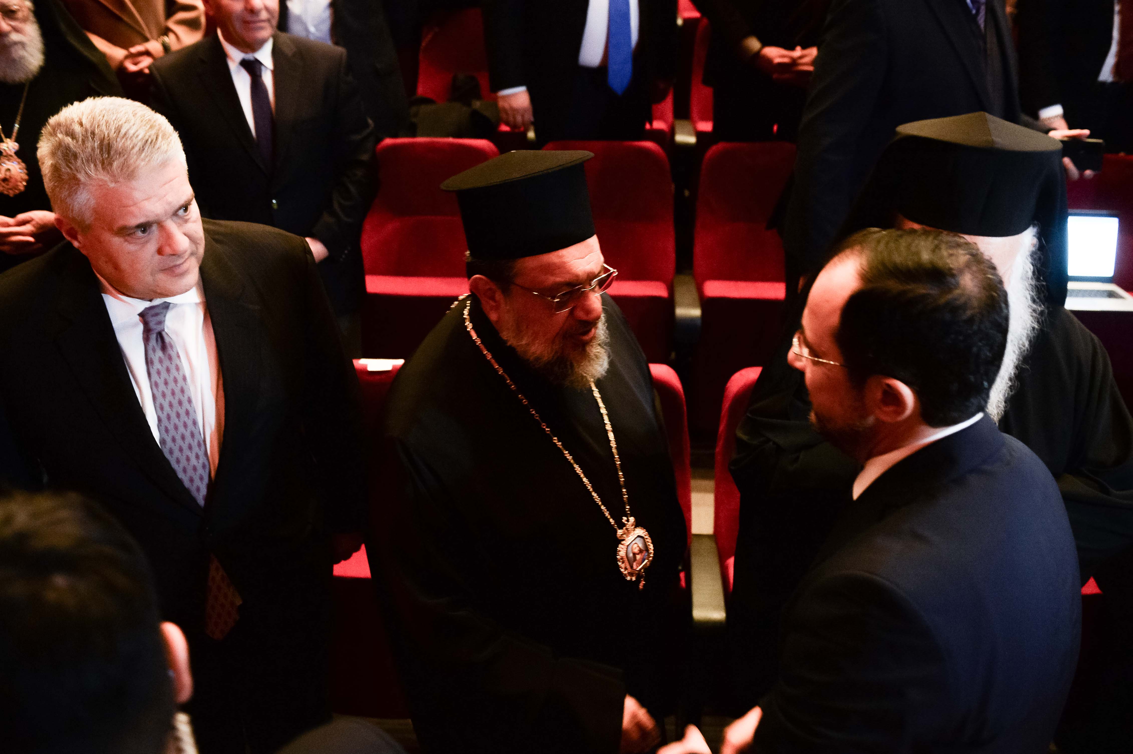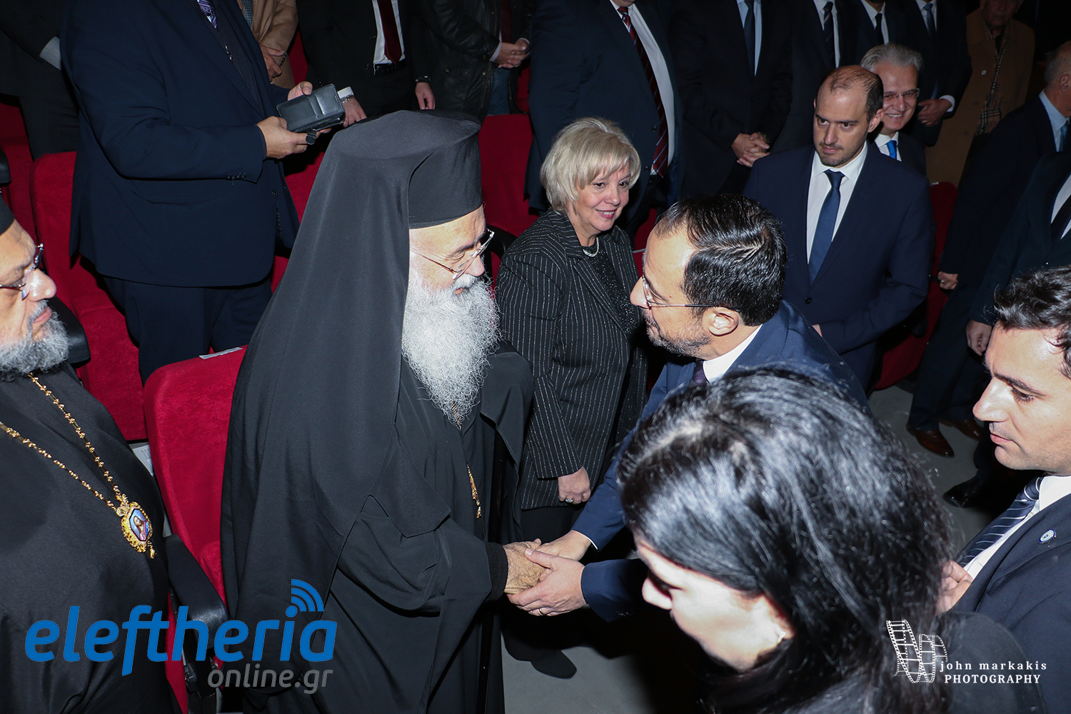 Τον Πρόεδρο της Κύπρου και τον Μακαριώτατο, τον οποίον συνόδευαν ο Μητροπολίτης Κωνσταντίας και Αμμοχώστου Βασίλειος και ο Επίσκοπος Καρπασίας Χριστοφόρος, υποδέχθηκαν στην είσοδο του Μεγάρου Χορού ο Μητροπολίτης Μεσσηνίας Χρυσόστομος και ο δήμαρχος Καλαμάτας Θανάσης Βασιλόπουλος.