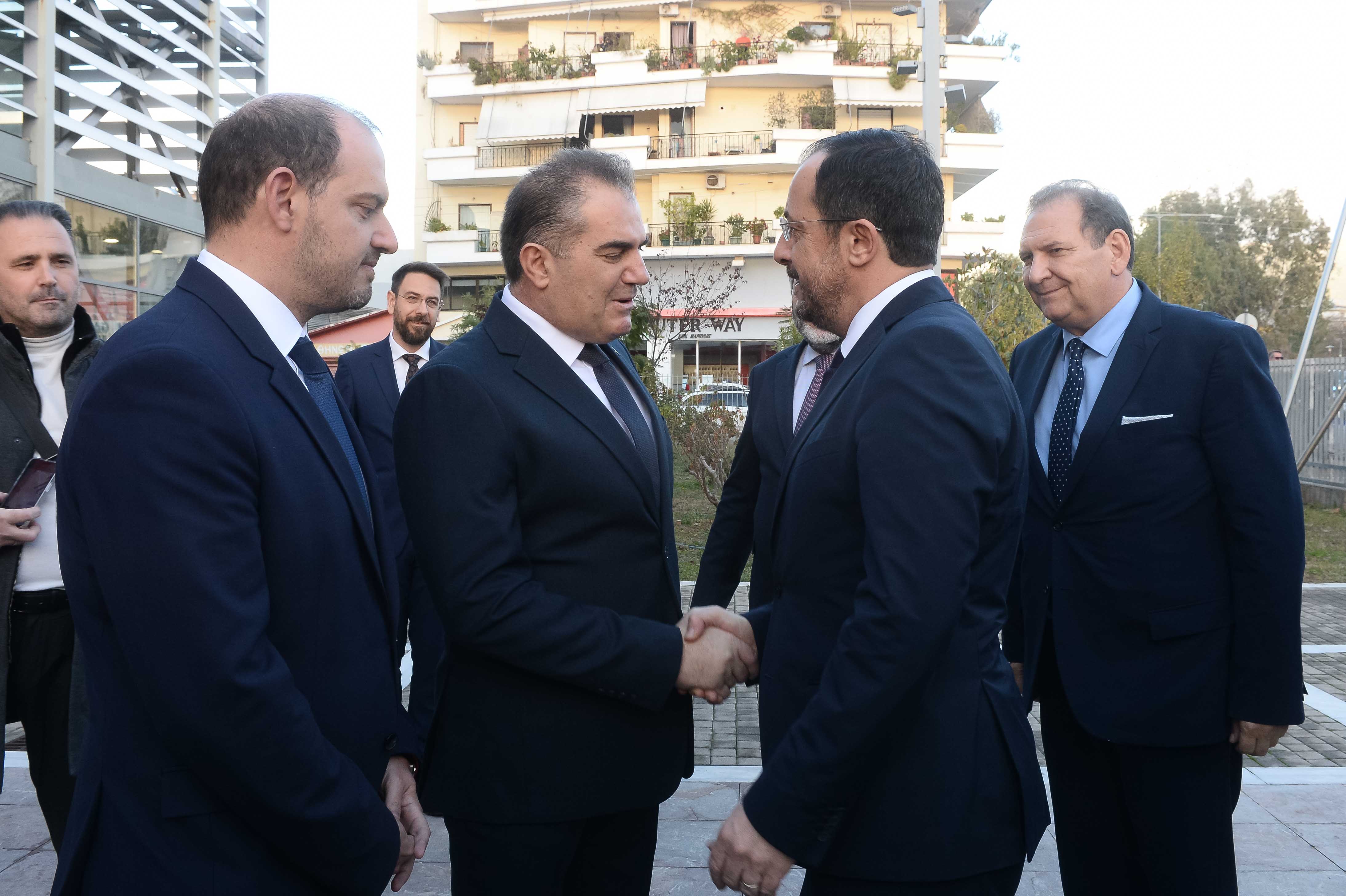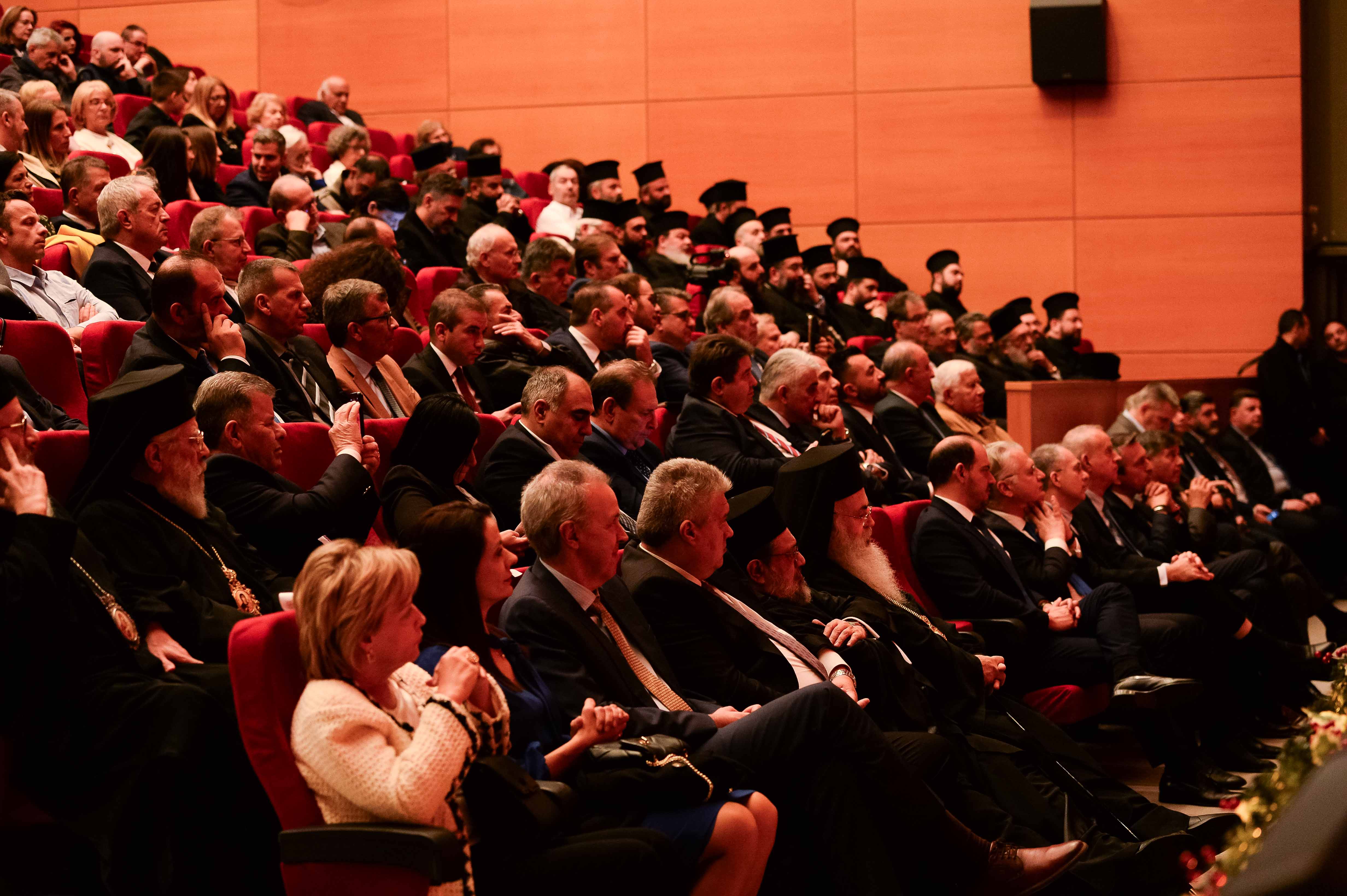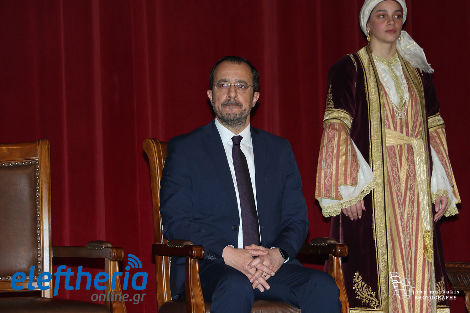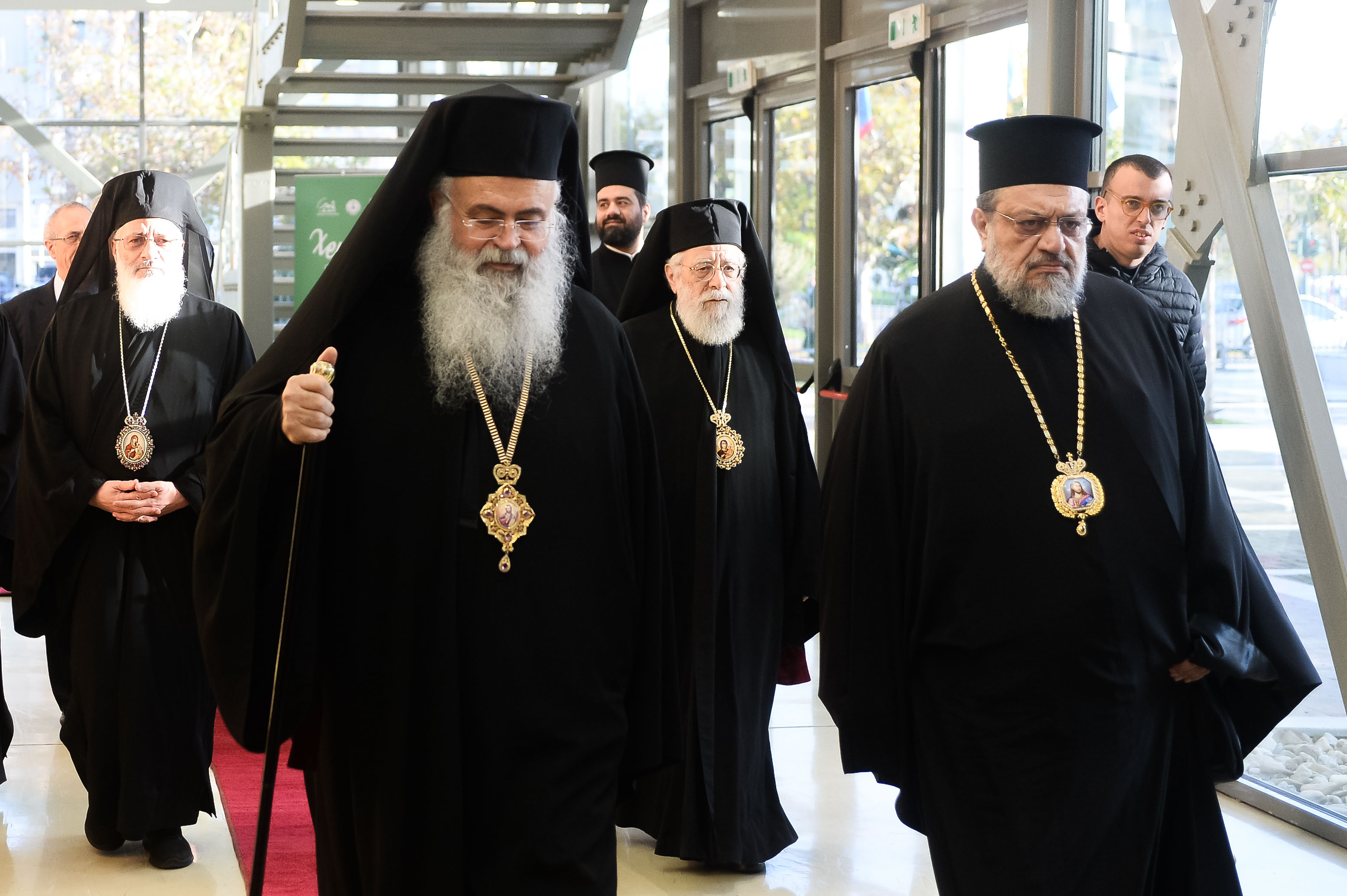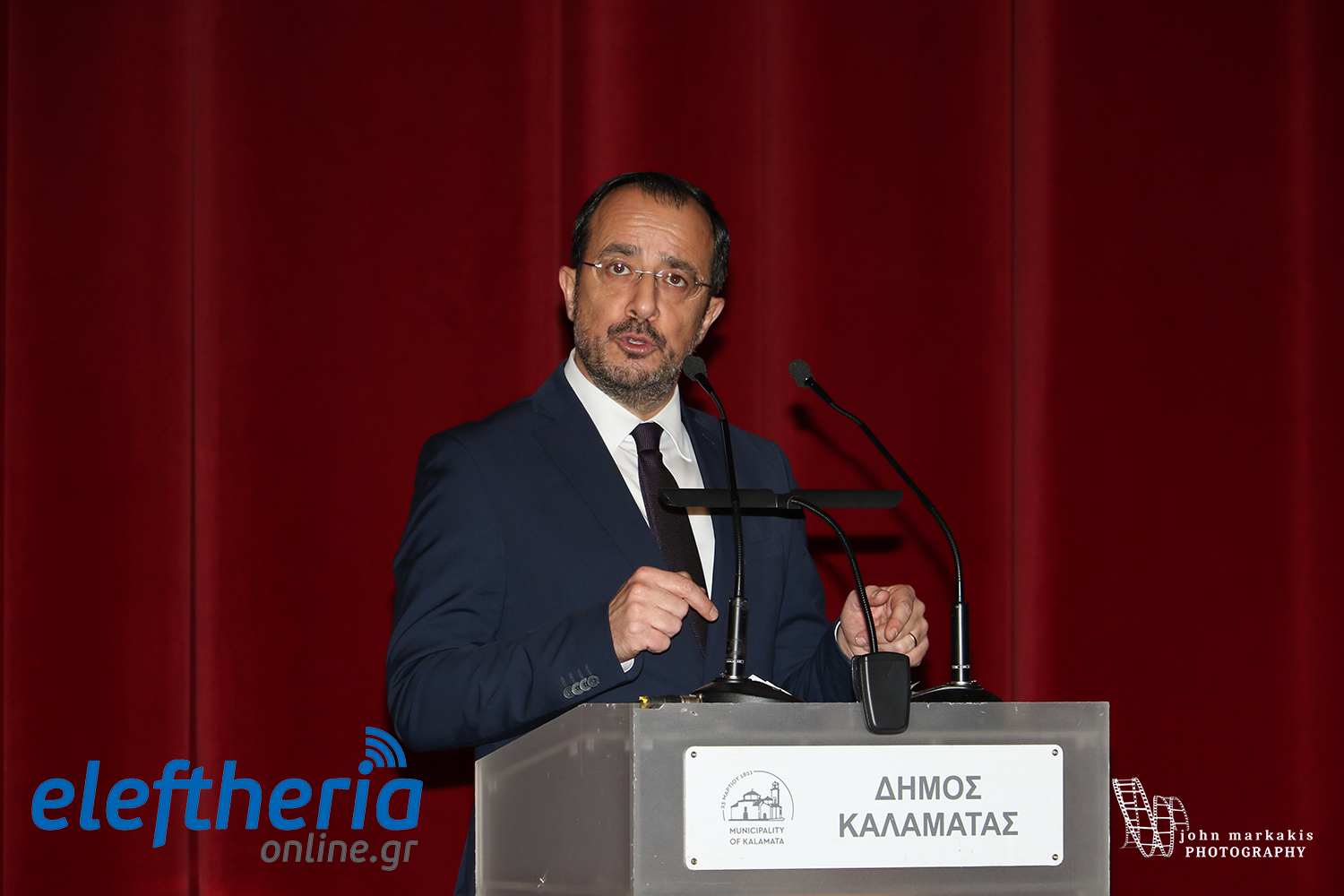 Τον Πρόεδρο της Κύπρου και τον Μακαριώτατο, τον οποίον συνόδευαν ο Μητροπολίτης Κωνσταντίας και Αμμοχώστου Βασίλειος και ο Επίσκοπος Καρπασίας Χριστοφόρος, υποδέχθηκαν στην είσοδο του Μεγάρου Χορού ο Μητροπολίτης Μεσσηνίας Χρυσόστομος και ο δήμαρχος Καλαμάτας Θανάσης Βασιλόπουλος.