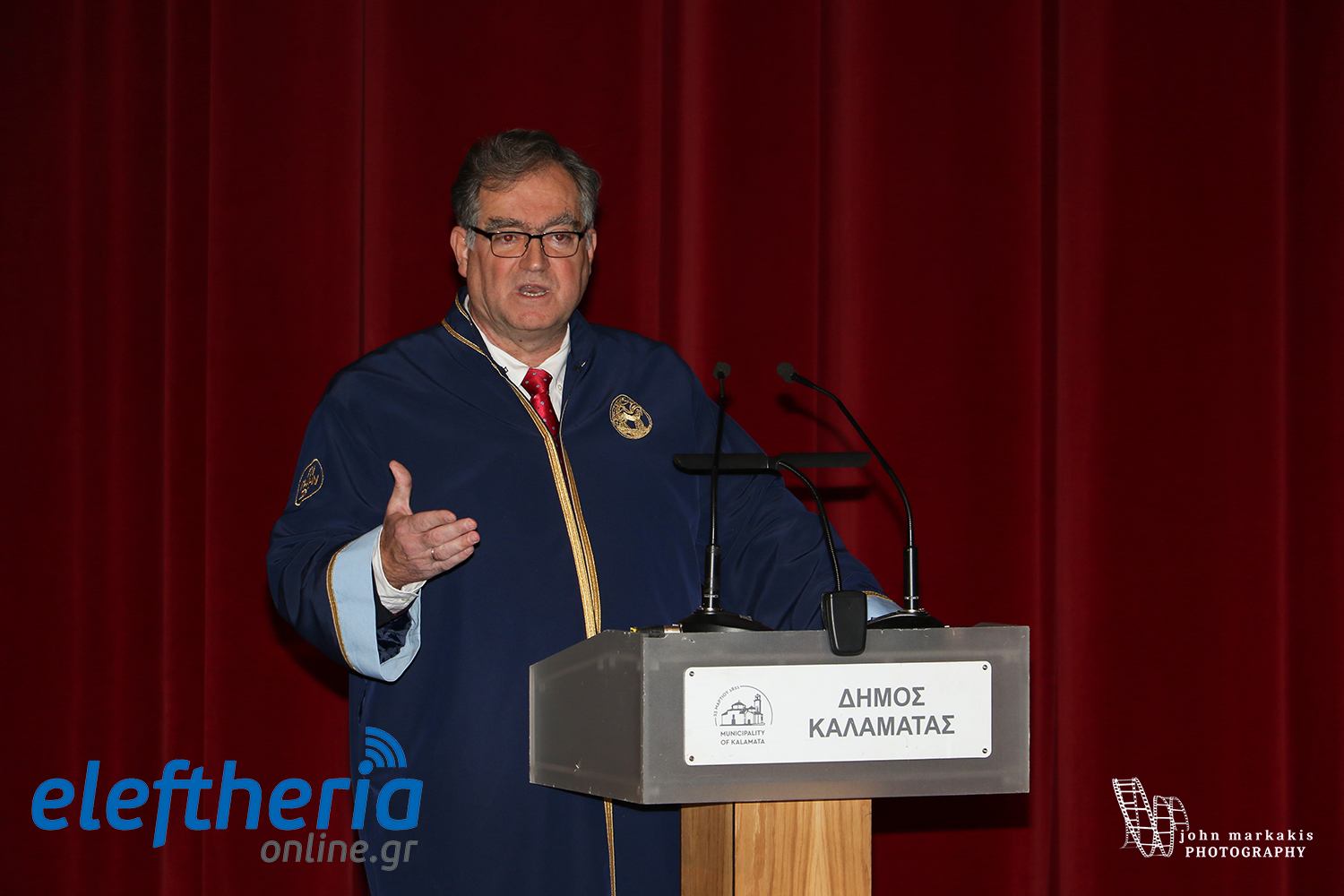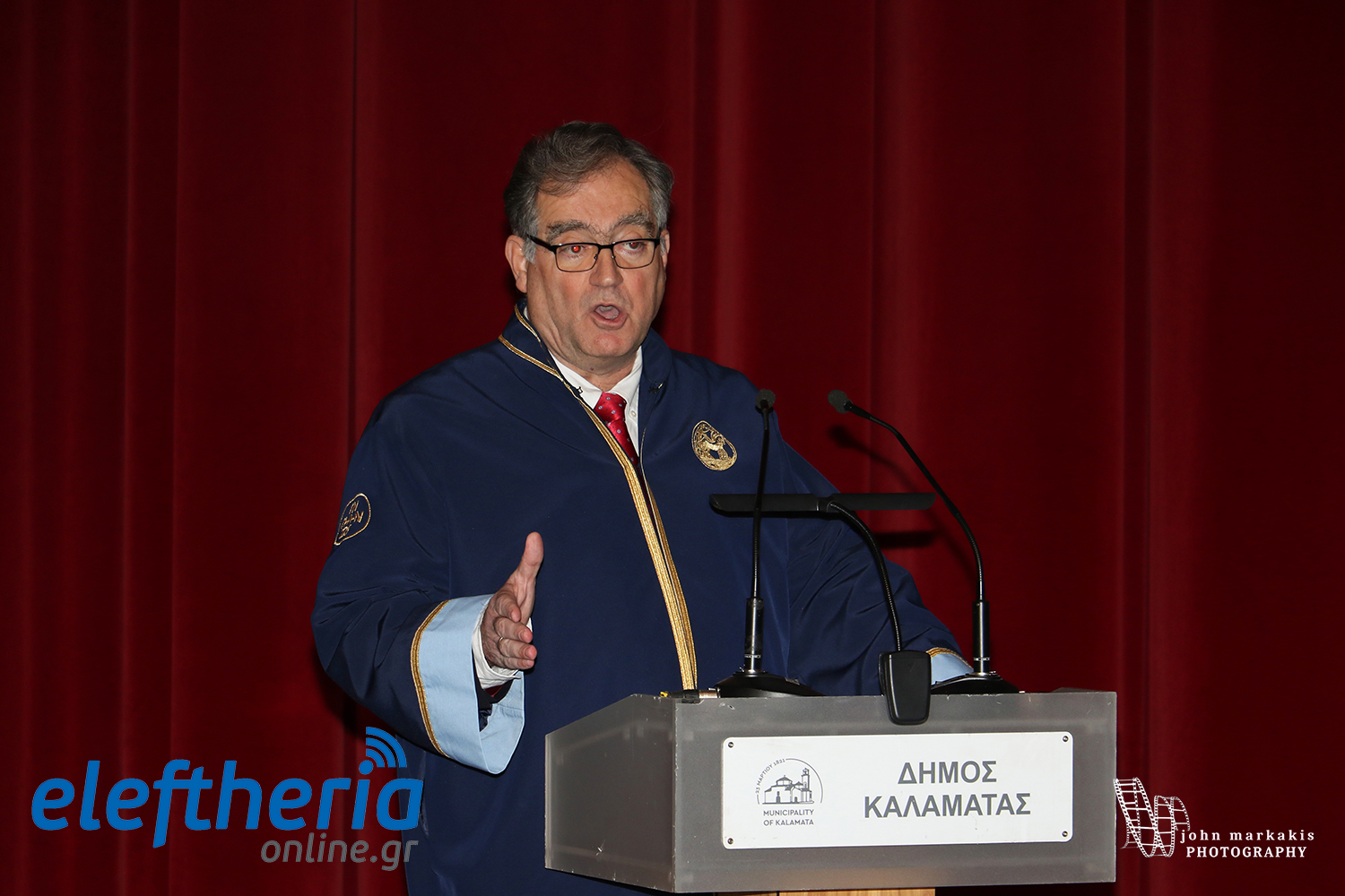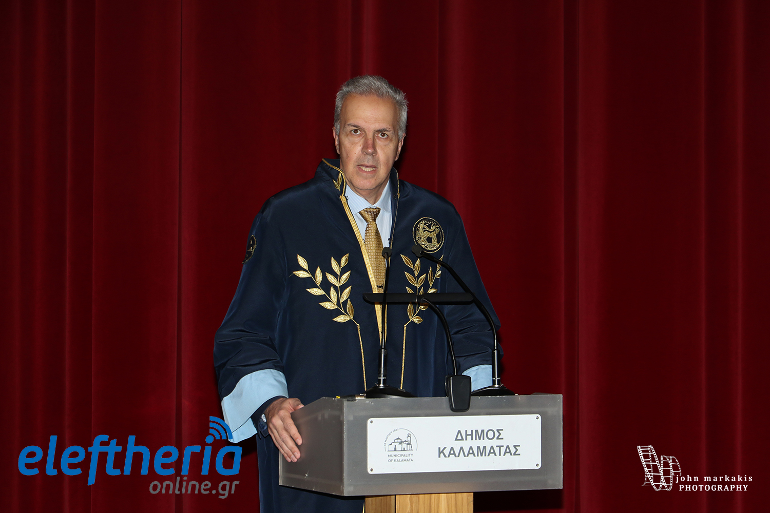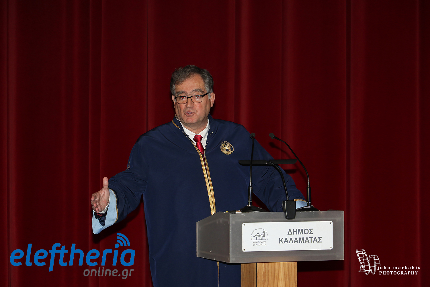 Πριν την τελετή ανακήρυξης προηγήθηκε η τελετή αναγόρευσης του κ. Χριστοδουλίδη σε επίτιμο διδάκτορα του Πανεπιστημίου Πελοποννήσου, μετά από ομόφωνη απόφαση του Τμήματος Ιστορίας, Αρχαιολογίας και Διαχείρισης Πολιτισμικών Αγαθών, που εδρεύει στην πόλη της Καλαμάτας.