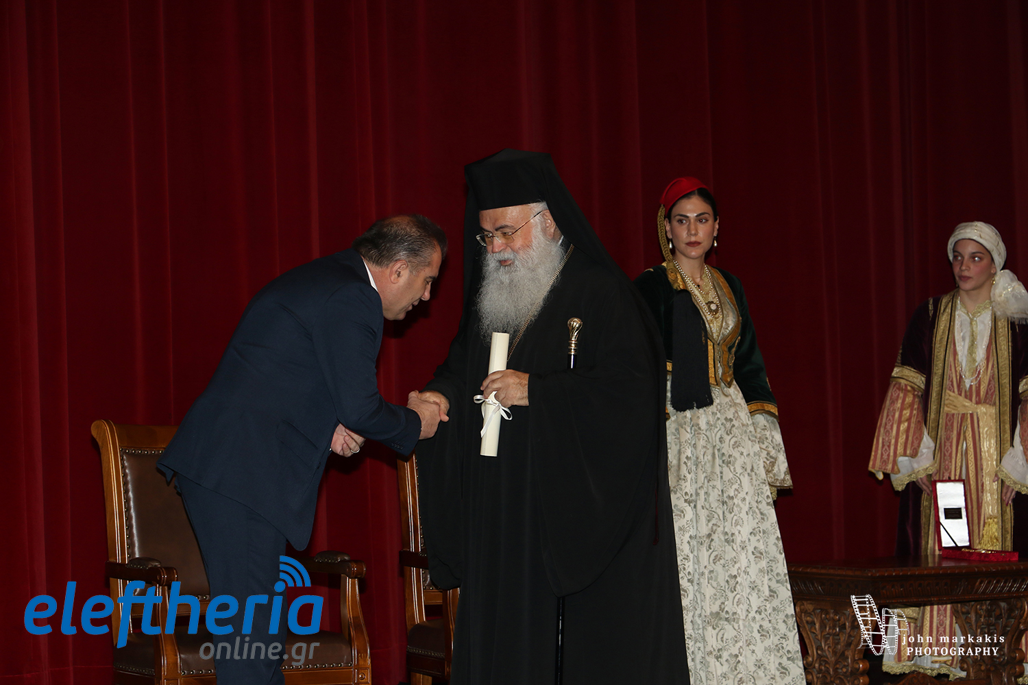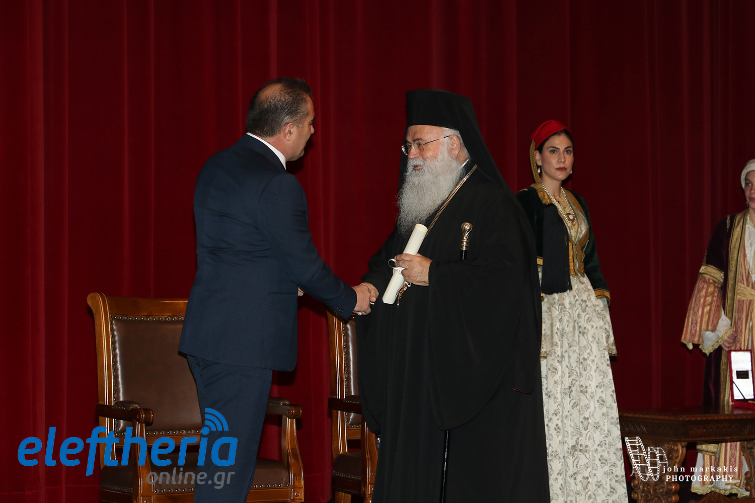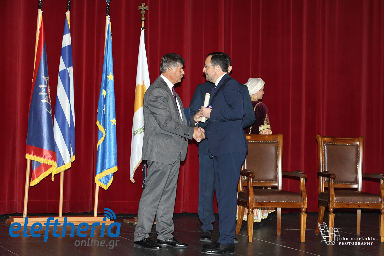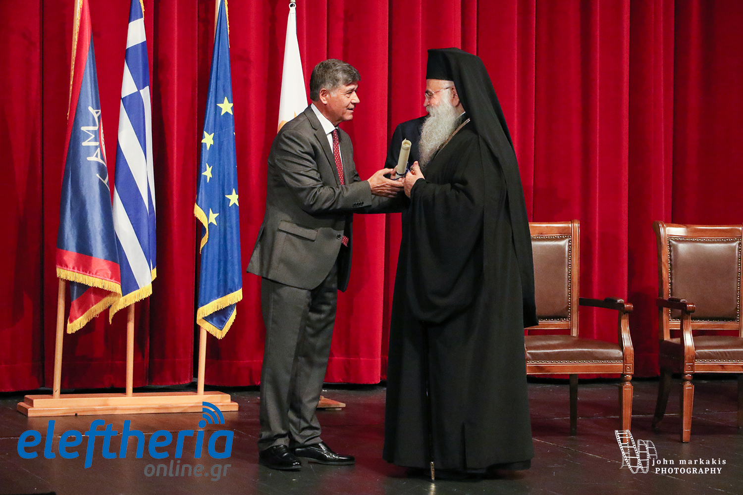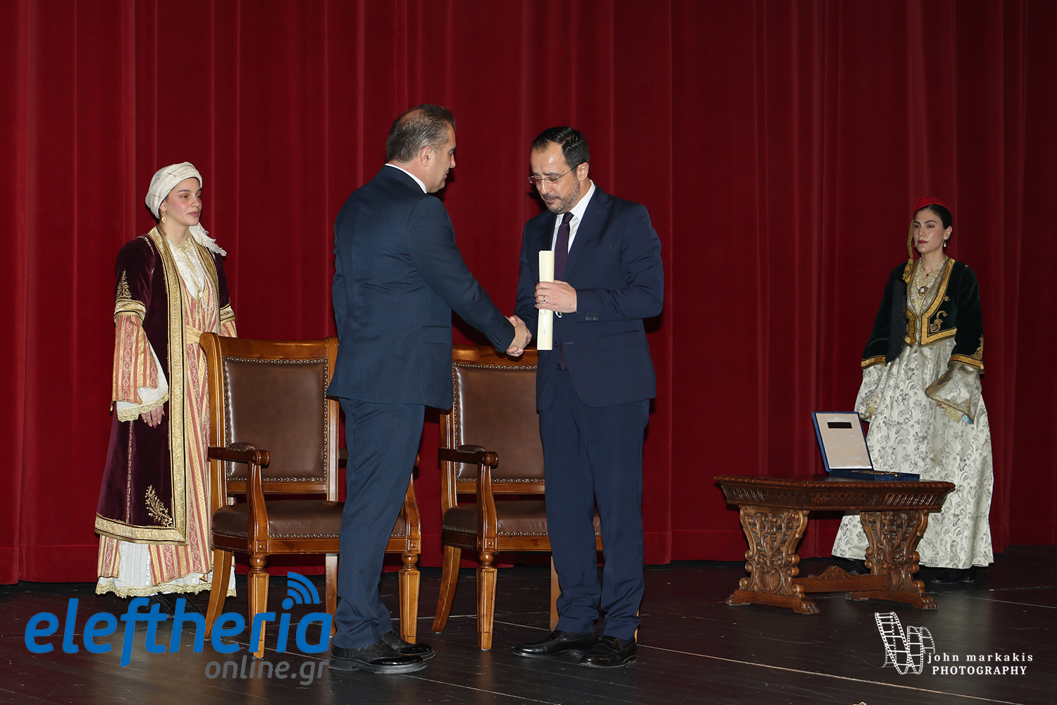Πριν την τελετή ανακήρυξης προηγήθηκε η τελετή αναγόρευσης του κ. Χριστοδουλίδη σε επίτιμο διδάκτορα του Πανεπιστημίου Πελοποννήσου, μετά από ομόφωνη απόφαση του Τμήματος Ιστορίας, Αρχαιολογίας και Διαχείρισης Πολιτισμικών Αγαθών, που εδρεύει στην πόλη της Καλαμάτας.