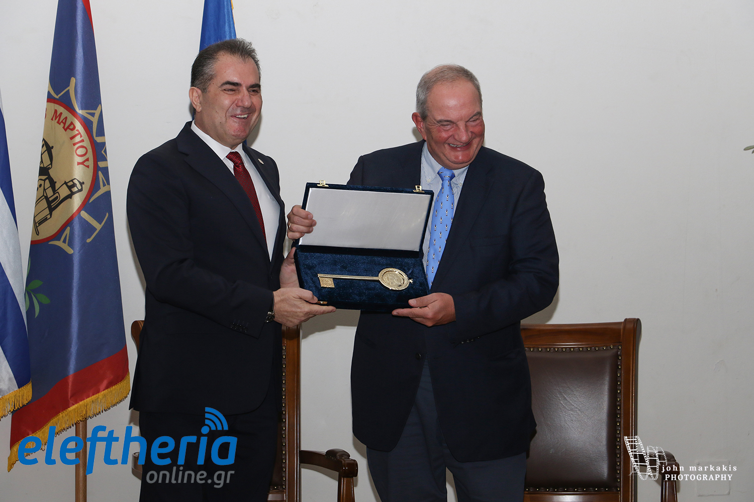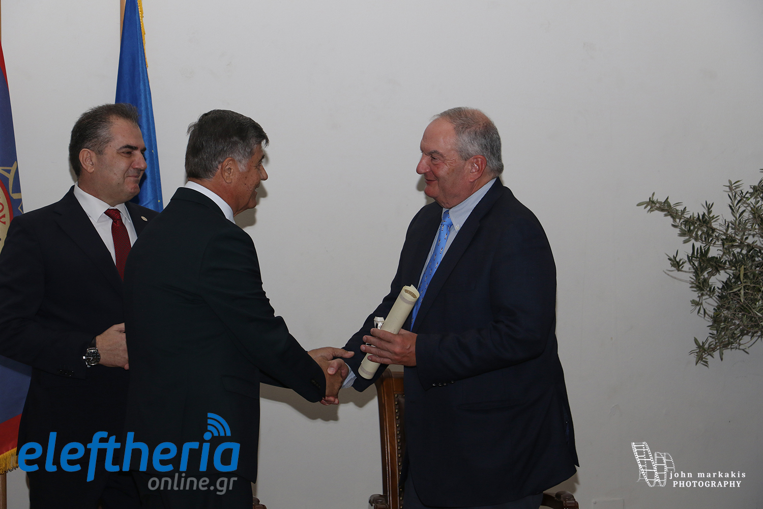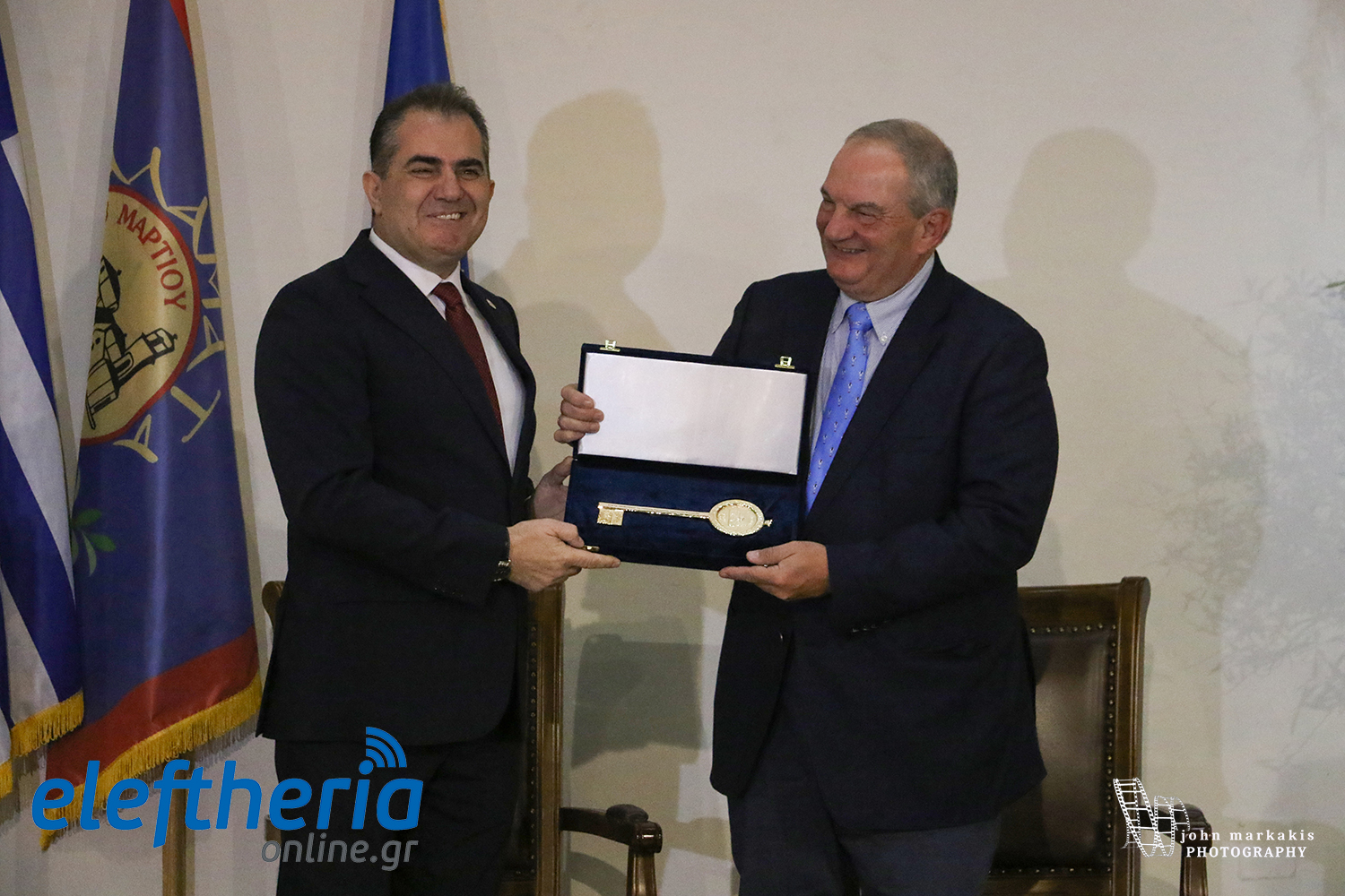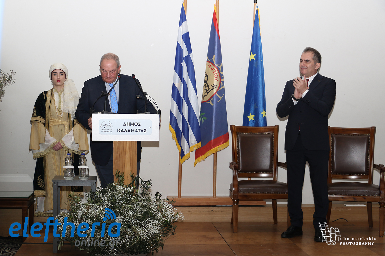 Ο πρόεδρος επέδωσε στον πρώην πρωθυπουργό το ψήφισμα της ανακήρυξης και ο δήμαρχος Καλαμάτας Θανάσης Βασιλόπουλος το χρυσό κλειδί της πόλης και τη Διακήρυξη της Μεσσηνιακής Γερουσίας προς τις Ευρωπαϊκάς Αυλάς.